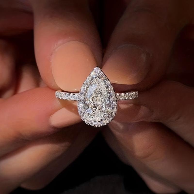 This stunning ring features a glittering teardrop-shaped simulation diamond, perfect for a modern and elegant look. Ideal for weddings or special occasions.