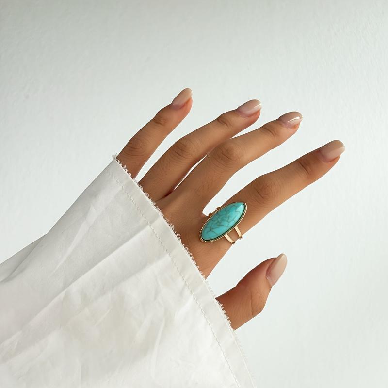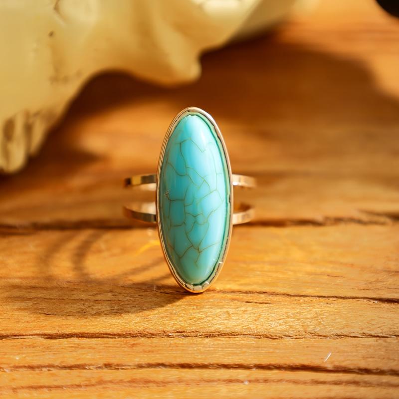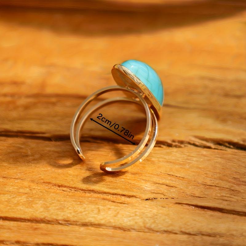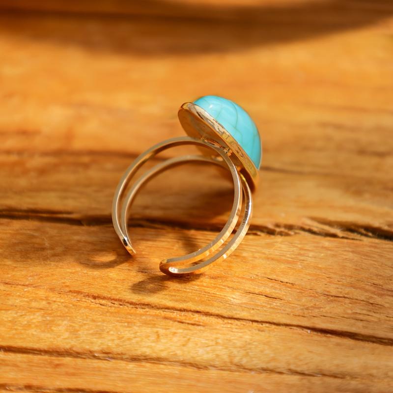 Add a touch of vintage-inspired elegance to your look with this KC golden plated ring featuring a turquoise stone. Ideal for everyday wear or formal occasions, this adjustable open ring is a versatile accessory that complements any outfit.