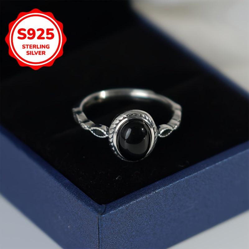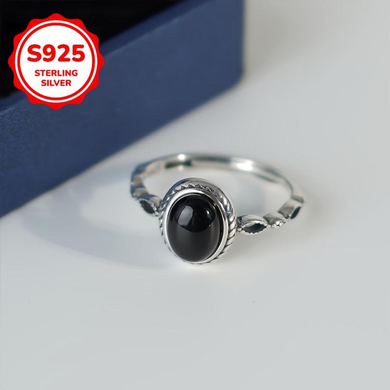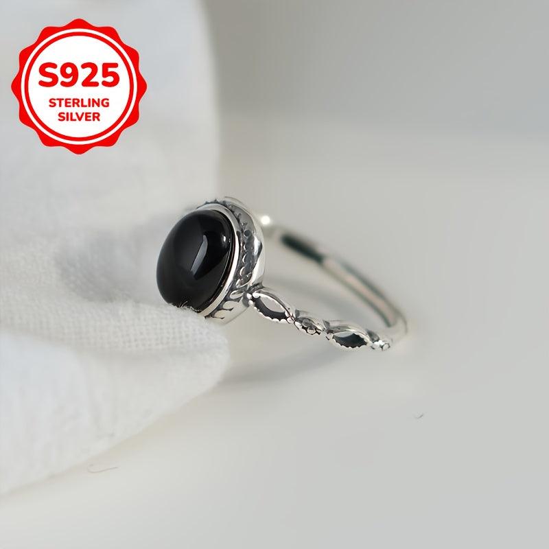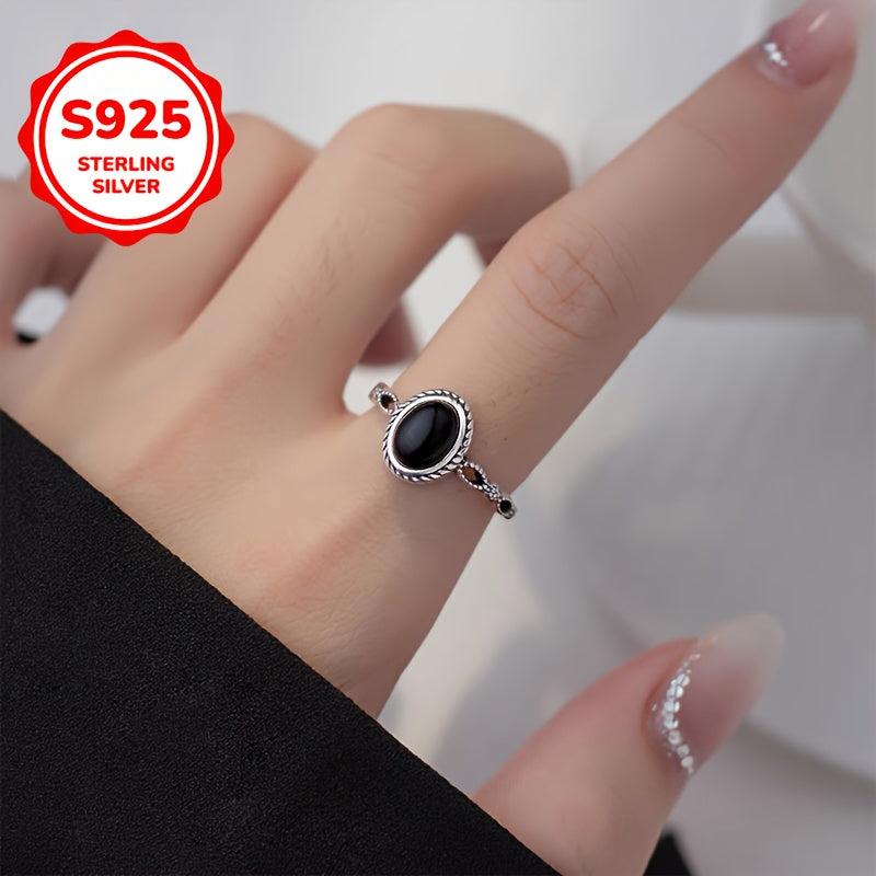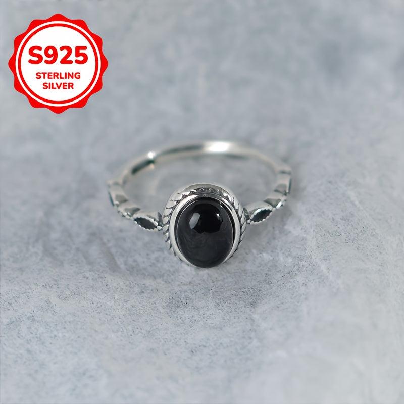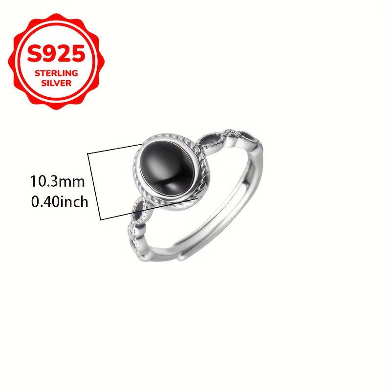 This vintage agate ring features an adjustable 925 sterling silver band with a hip hop street style design. It is perfect for daily wear and gifting, showcasing high jewelry craftsmanship with a red seal stamp.