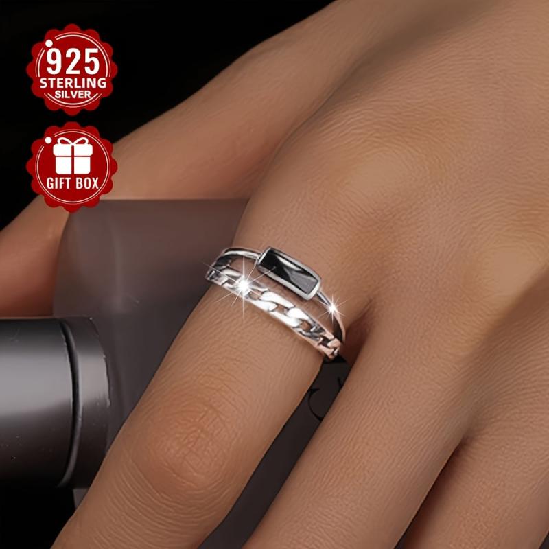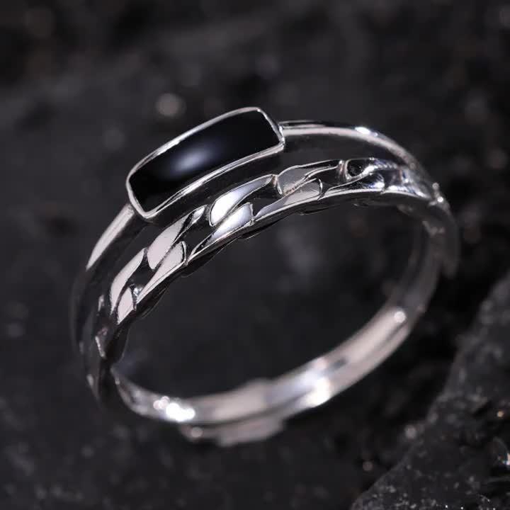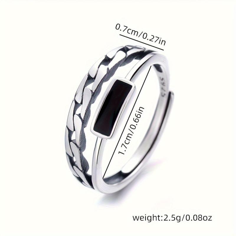 Charm everyone at parties with this elegant vintage-inspired open ring made of 925 sterling silver featuring an enamel rectangular link. Perfect for banquets and special occasions.