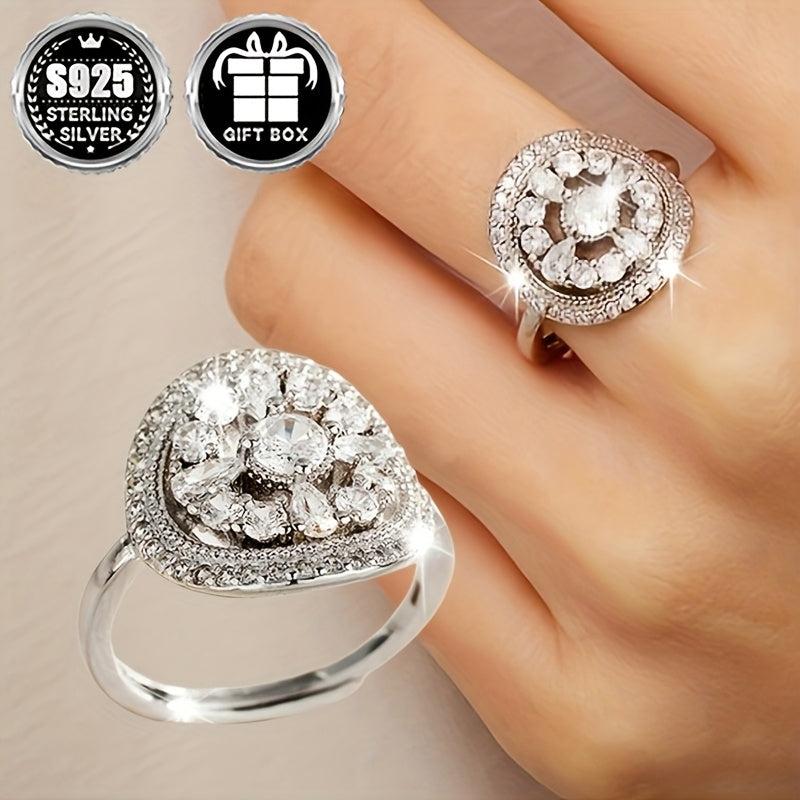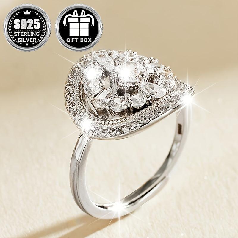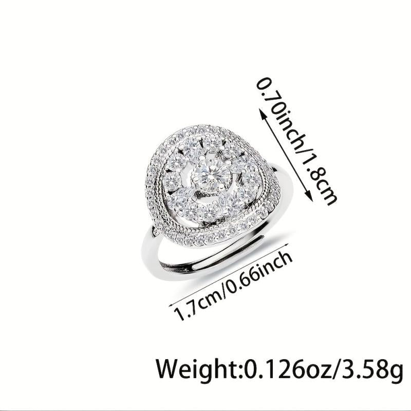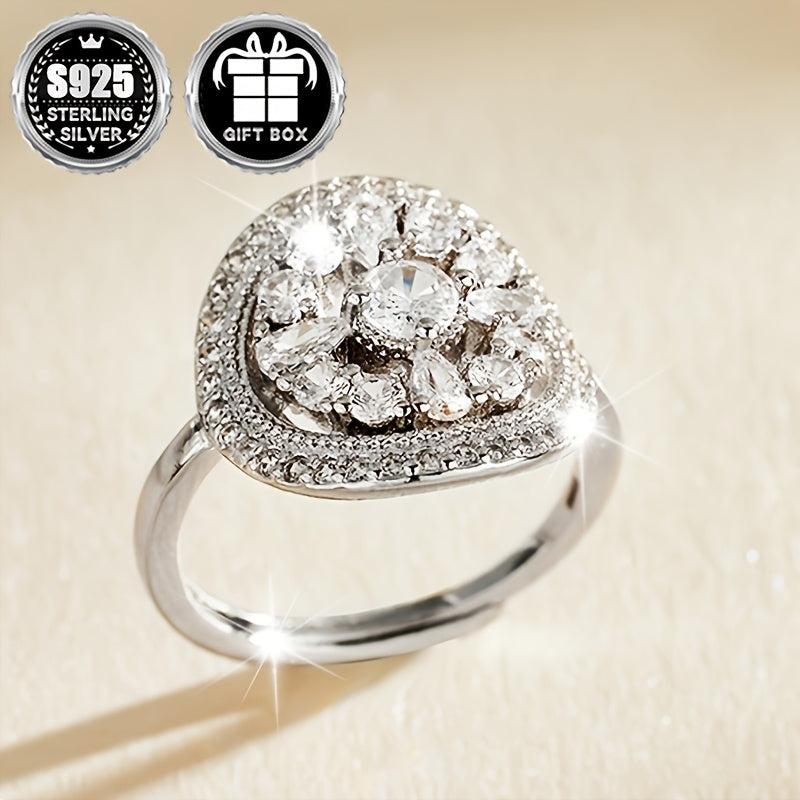 This stunning ring is crafted from 925 sterling silver and features sparkling cubic zirconia stones. It is adjustable and perfect for both daily wear and special occasions.