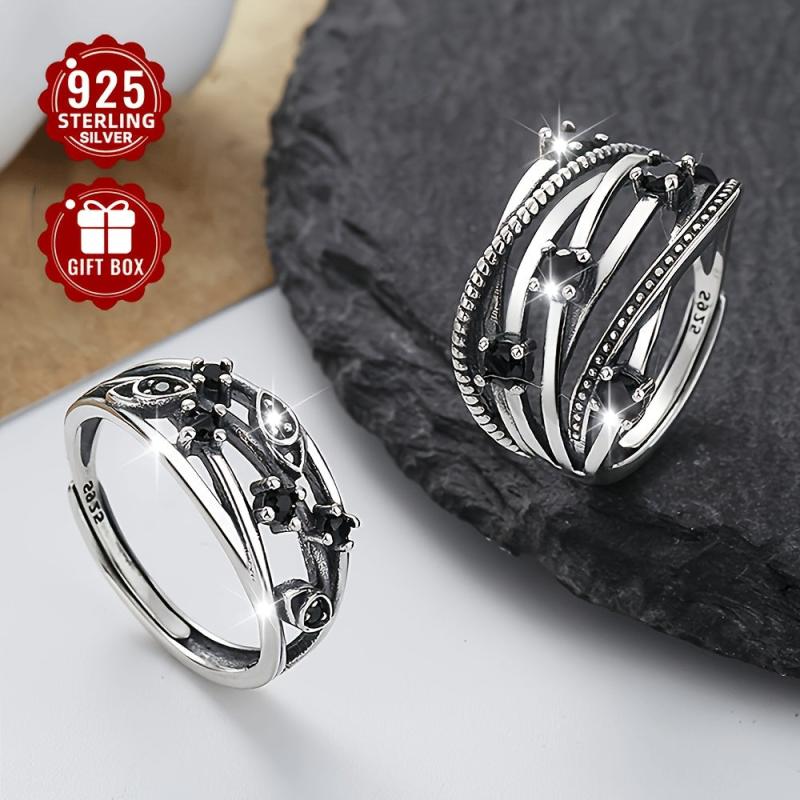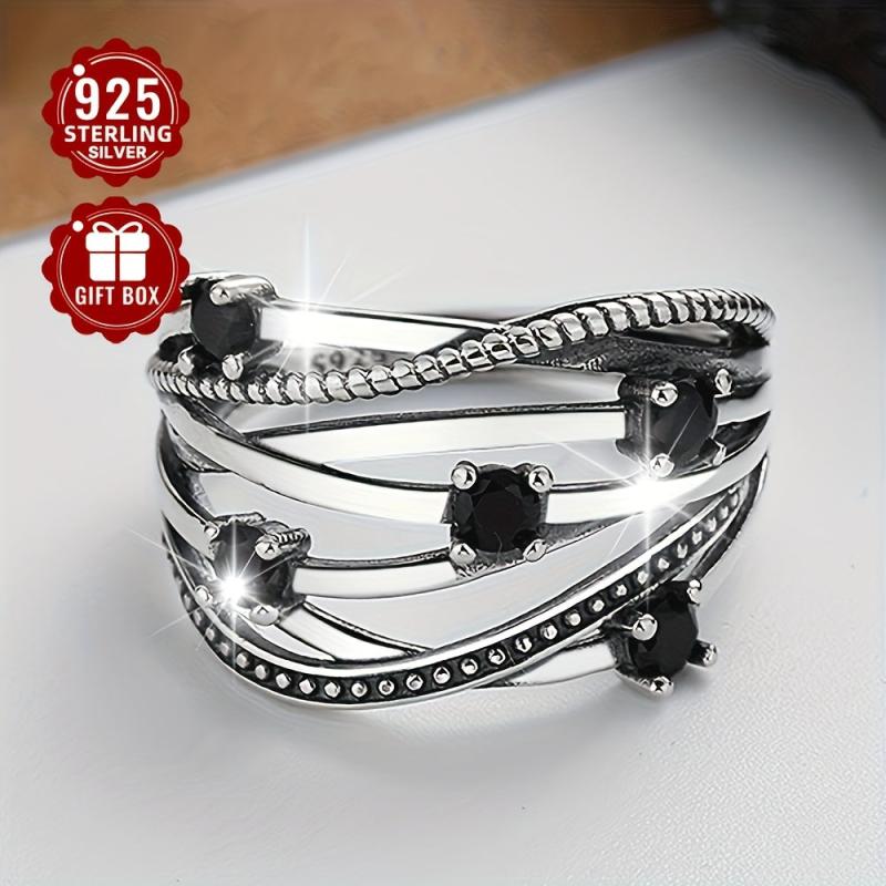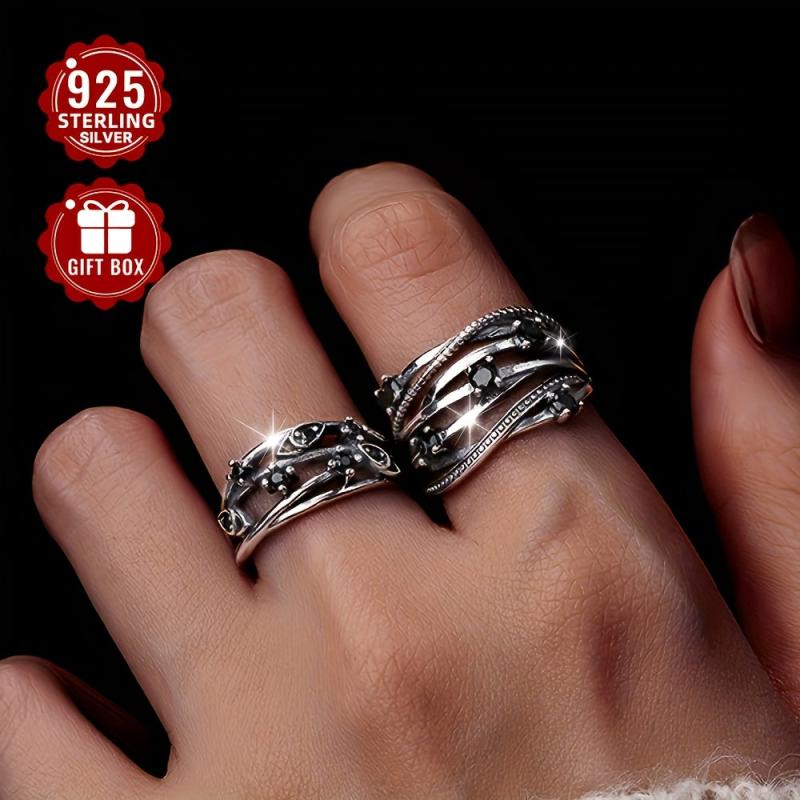 This vintage S925 pure silver ring features a geometric design with irregular synthetic zirconia inlays. Perfect for daily wear or parties, makes a great gift for friends, lovers, and family.