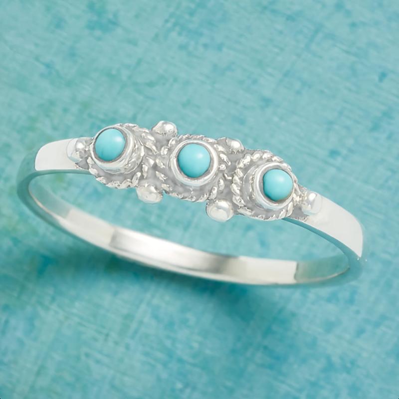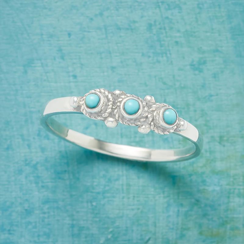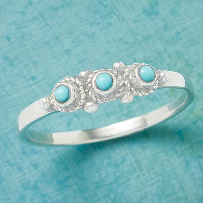 Stylish ring featuring a synthetic turquoise carving pattern on the strap, perfect for daily wear by both men and women.