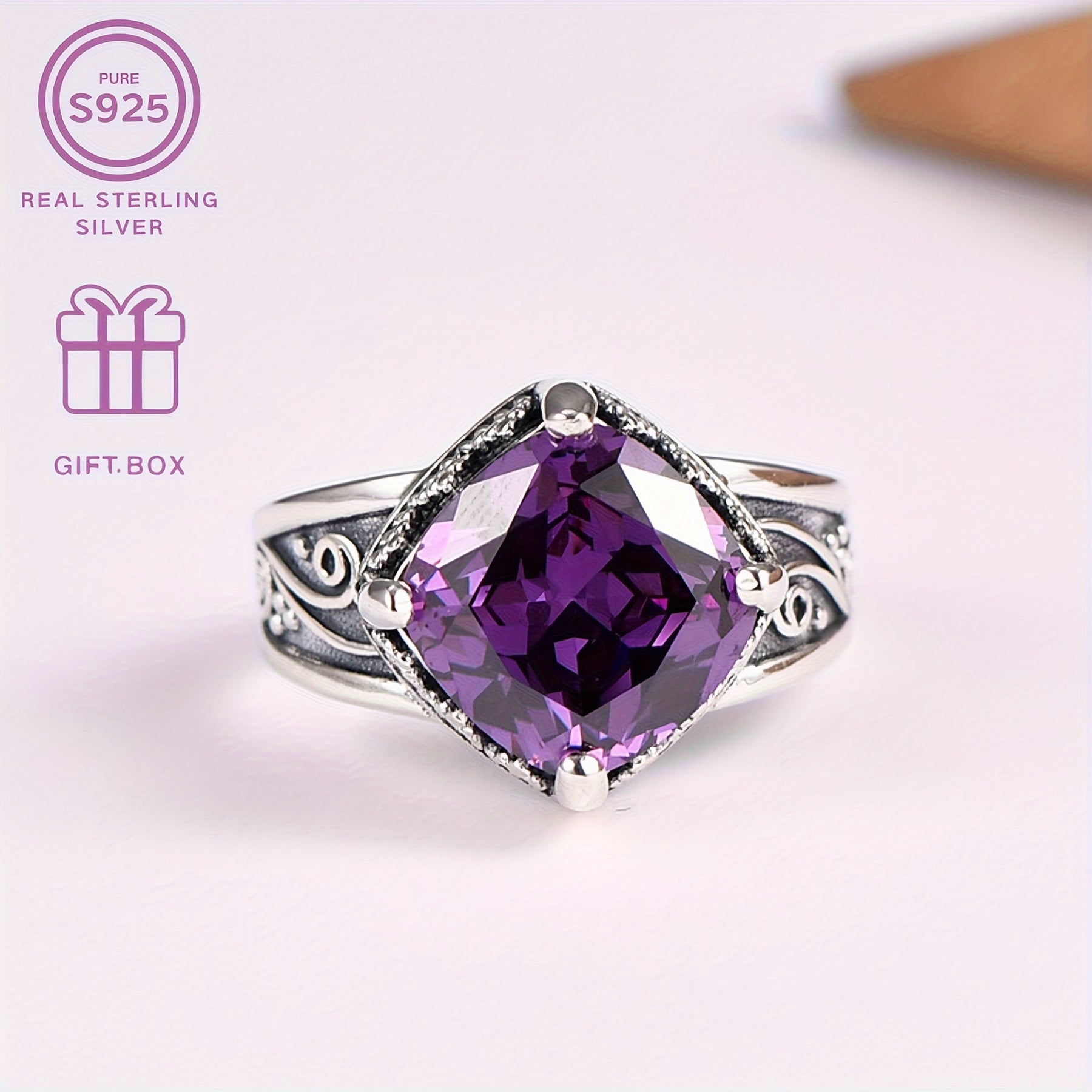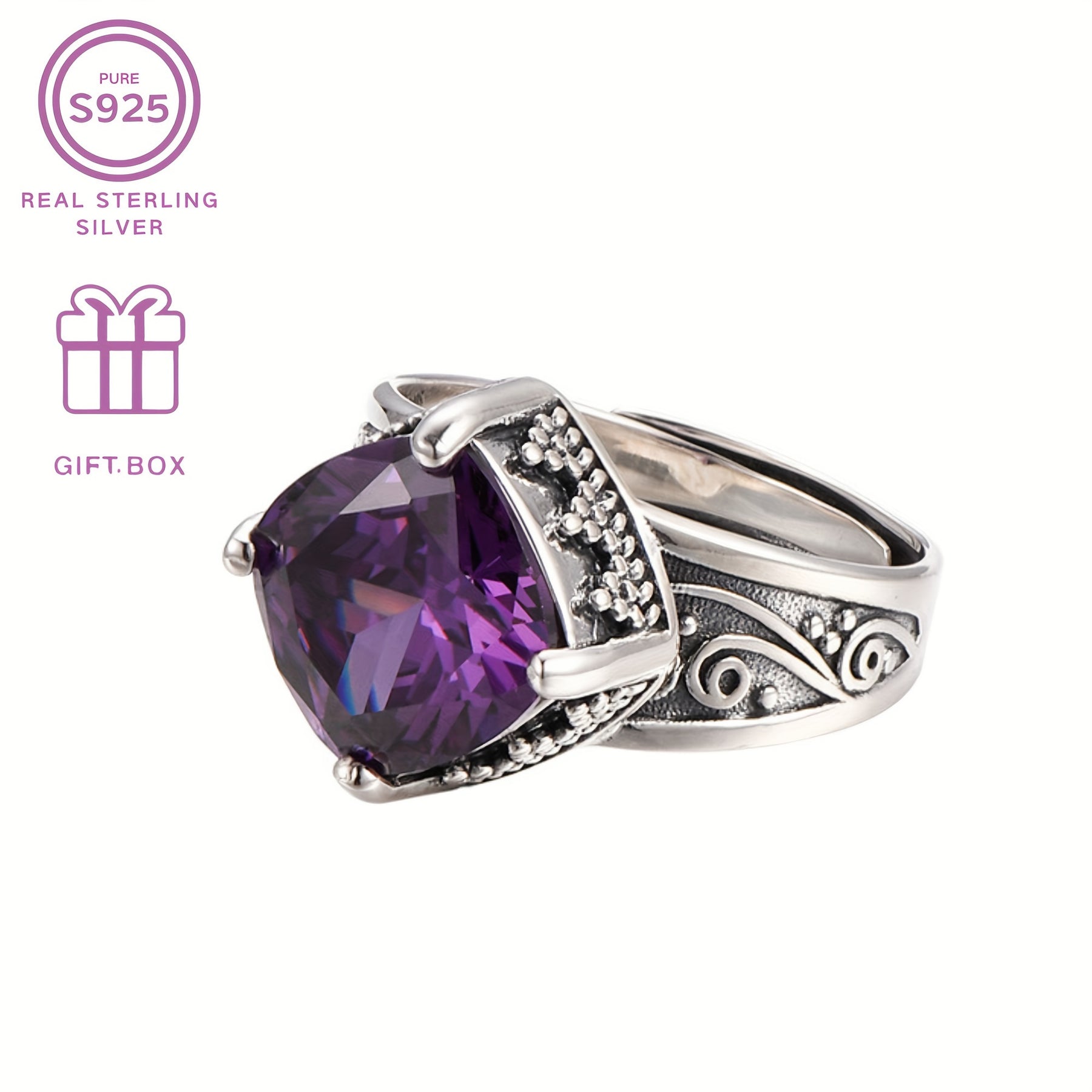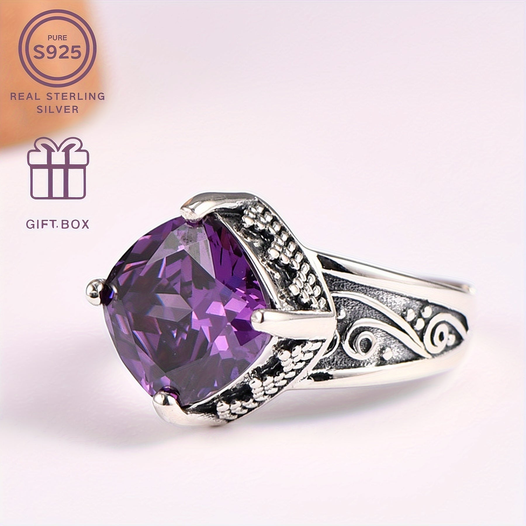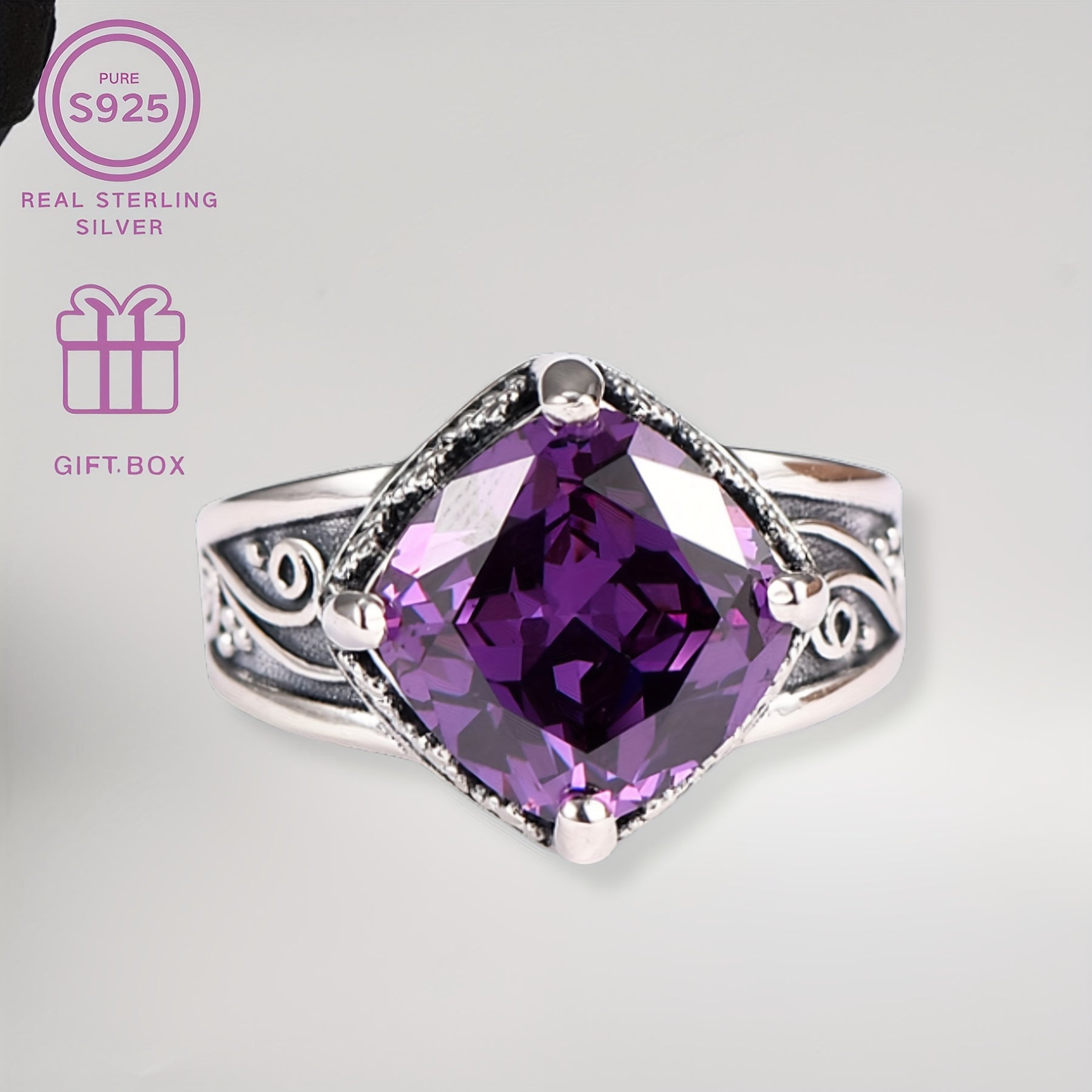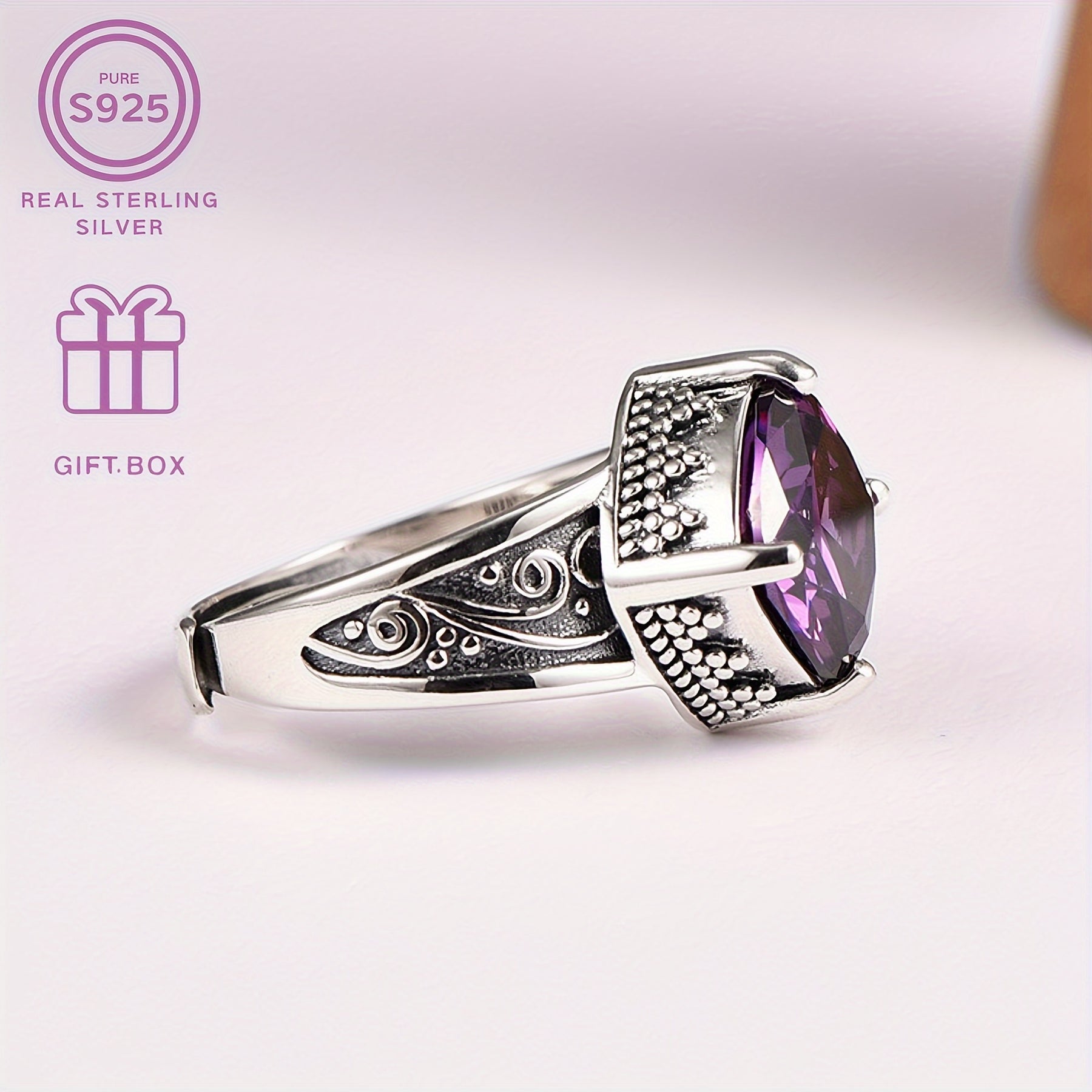 This vintage style sterling silver ring with synthetic zirconia is the perfect Christmas and Mother's gift for your family and friends. It is a timeless and romantic piece of jewelry that will be cherished for years to come.