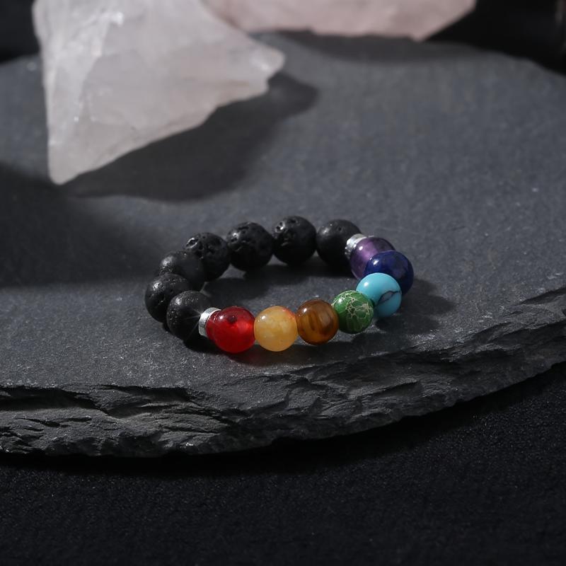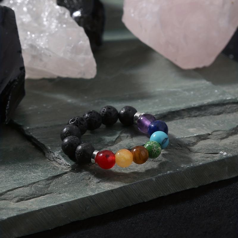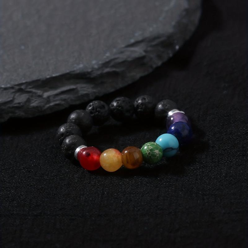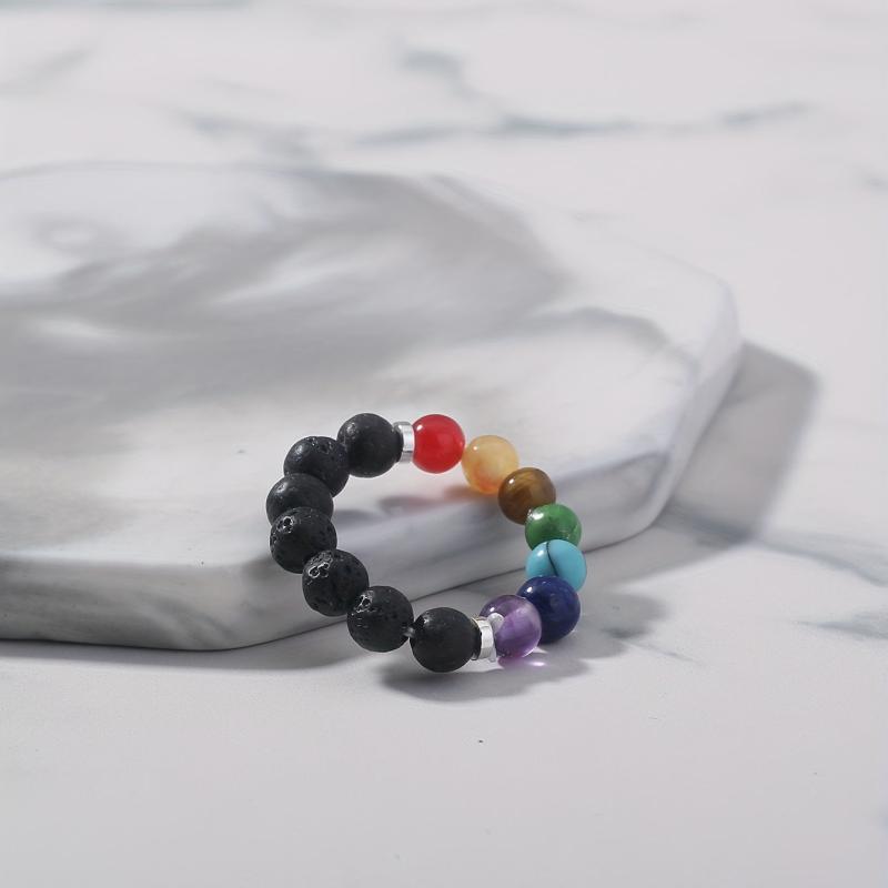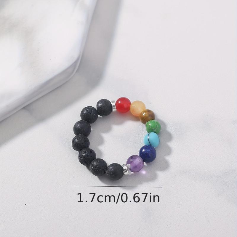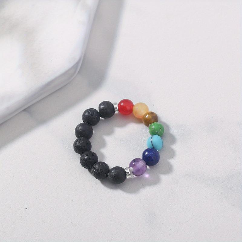 This vibrant stretch ring features a variety of natural gemstones in red, yellow, orange, green, and clear hues. Perfect for adding a pop of color to your casual attire or as a stylish accessory for your vacation outfits.