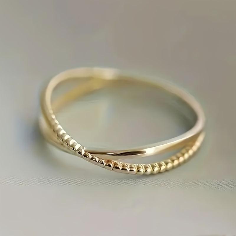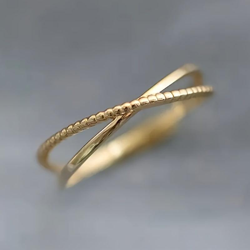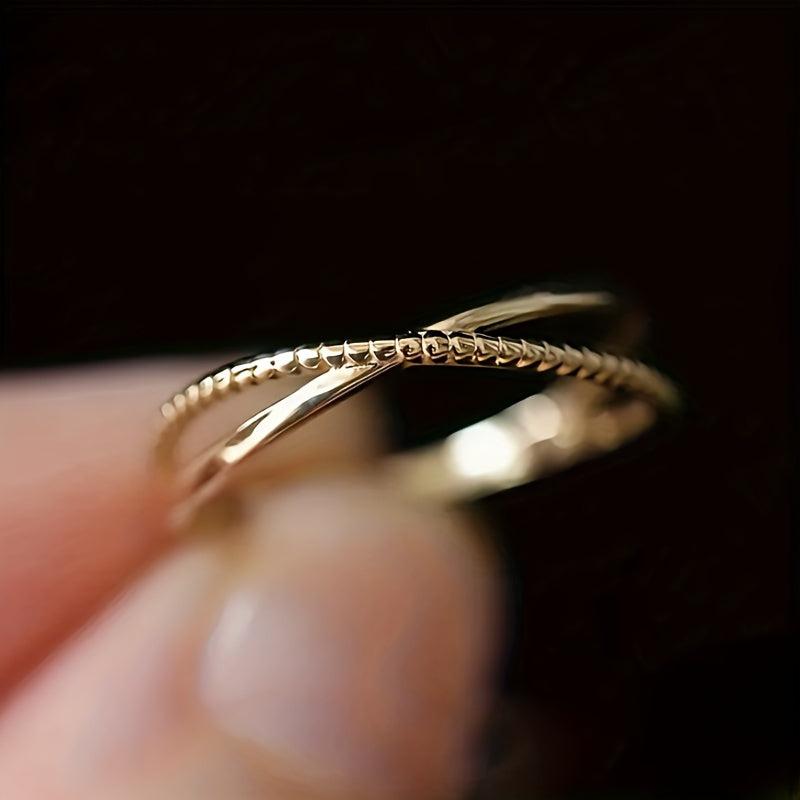 This stylish ring features a golden tone cross intersecting with a textured copper band, making it ideal for daily outfits and casual wear.