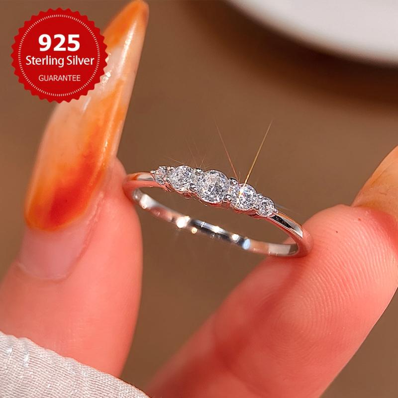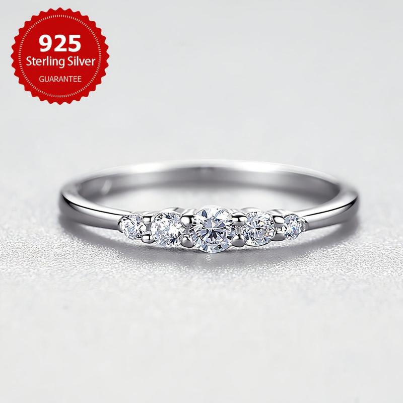This elegant five stone ring is the perfect choice for a wedding or anniversary. Made of s925 sterling silver, it features synthetic gemstones that sparkle beautifully. A great gift for birthdays or Mother's Day.