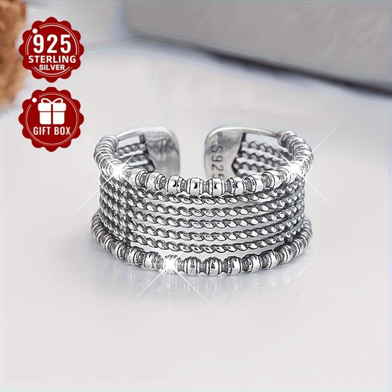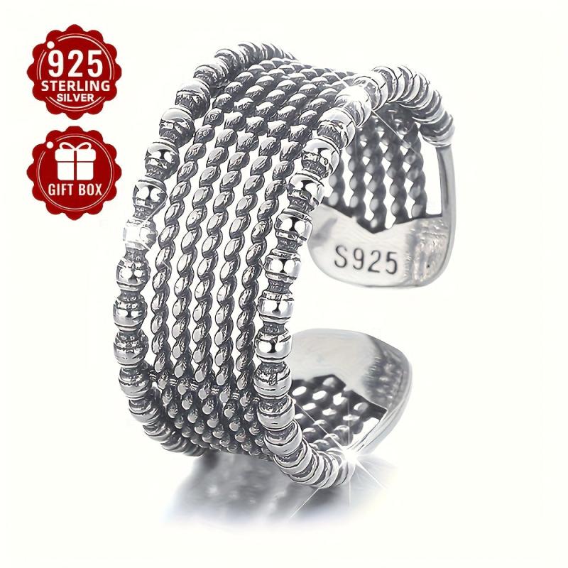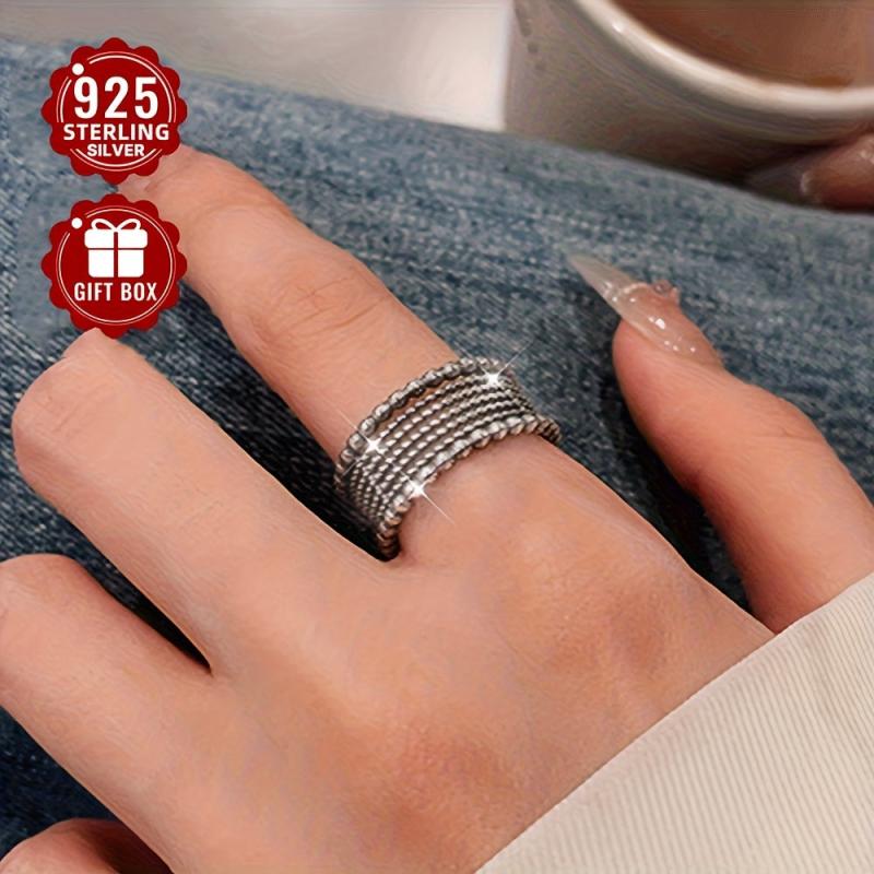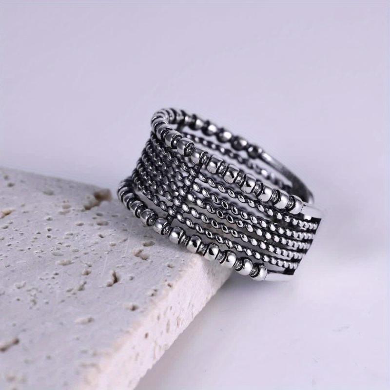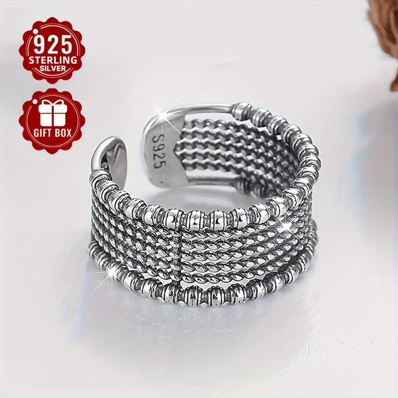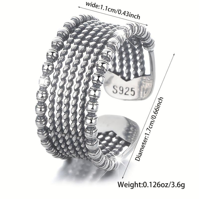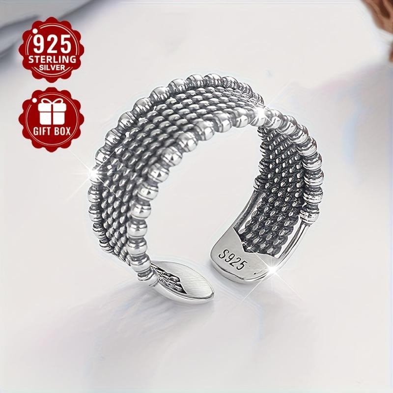 This S925 pure silver open ring features a retro design with a wide version and small round bead. It is suitable for daily wear and a great holiday gift choice.
