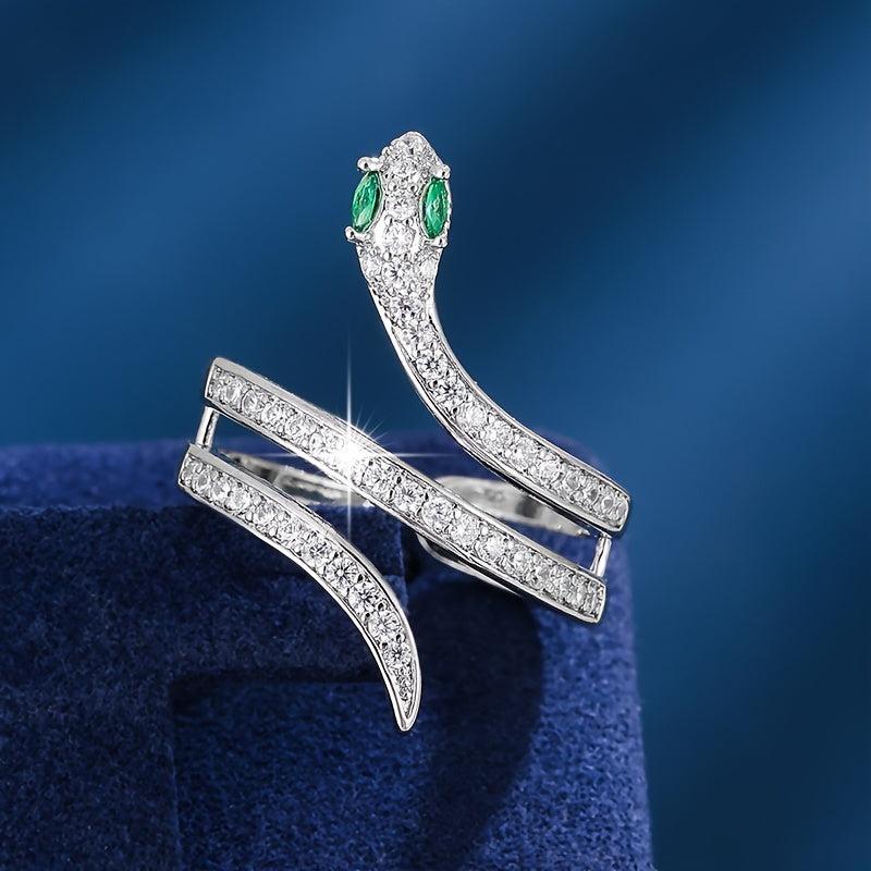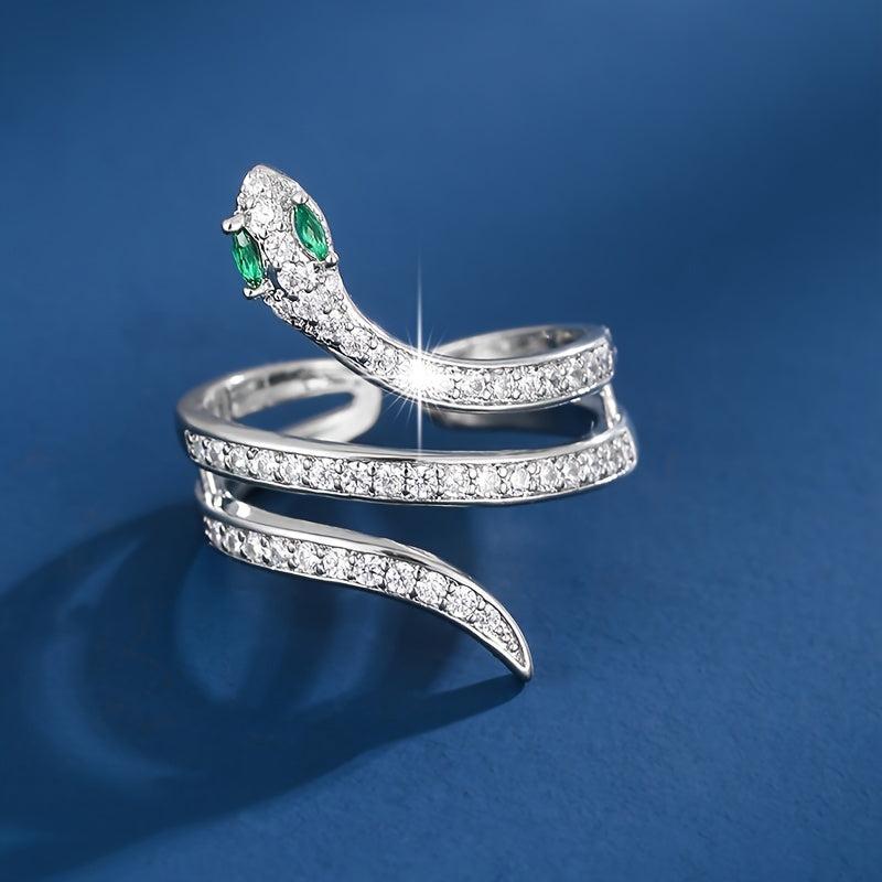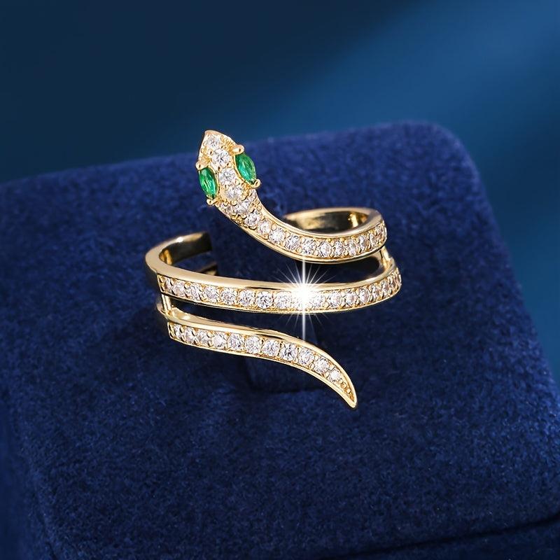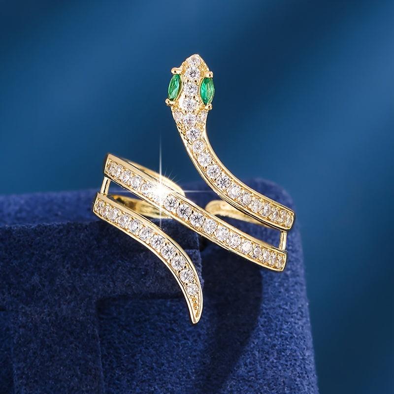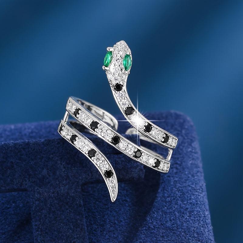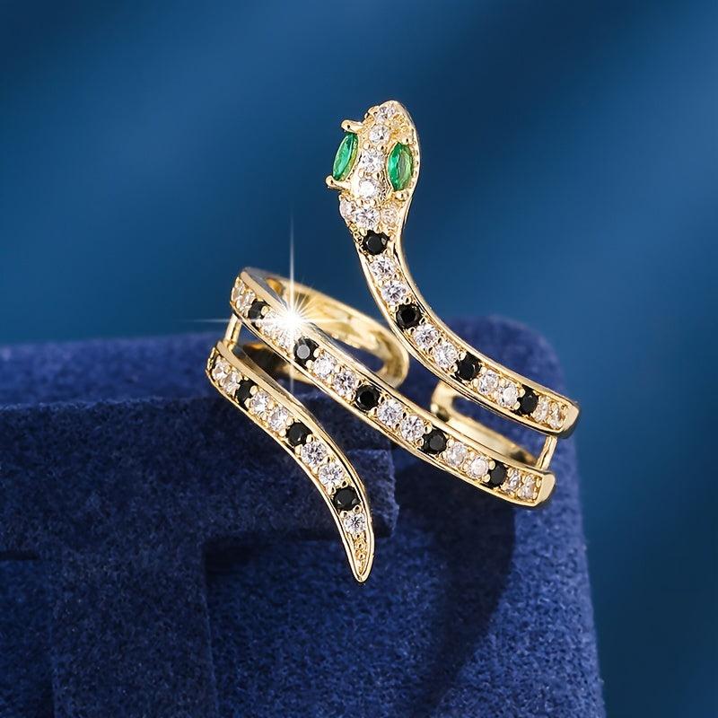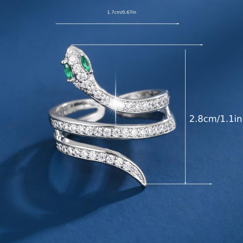 This stunning snake open ring is crafted from copper and adorned with synthetic cubic zirconia stones. Perfect for daily wear or as a gift. Versatile for all seasons.