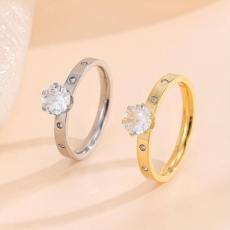 This stunning engagement ring features sparkling synthetic zirconia set in high-quality 304 stainless steel. Perfect for weddings, special occasions, and daily wear.