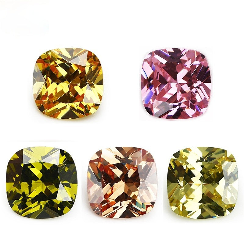 This 10x10mm square cut gem features vibrant artificial zircon in violet, sapphire, ruby, and emerald colors. Perfect for creating stunning jewelry pieces.