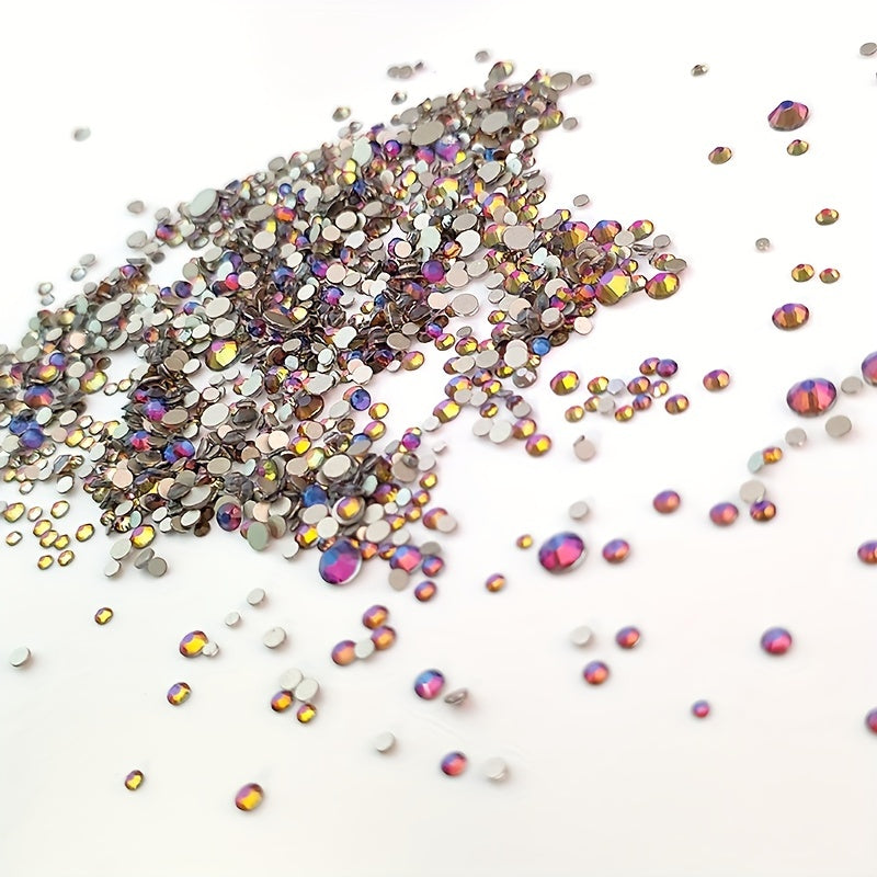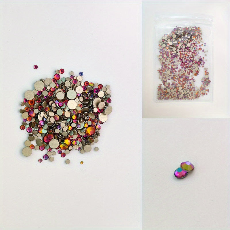 Get a set of 1000pcs mixed rhinestones in 8 different sizes with flame colored flat bottom for your DIY jewelry projects.