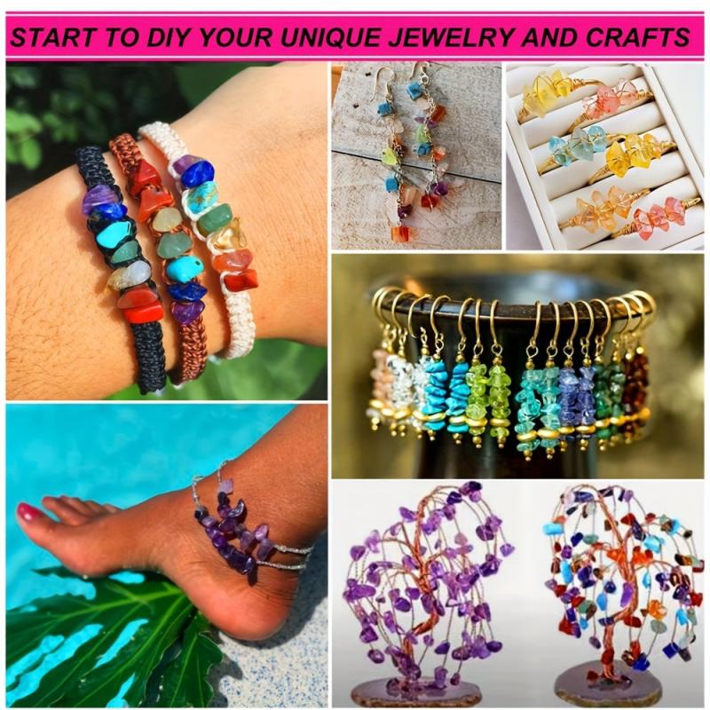 This assortment pack contains 1000 pieces of natural stone beads in assorted irregular chip shapes, perfect for creating DIY jewelry, bracelets, necklaces, and crafts with a bohemian flair. The beads range in size from 5mm to 8mm.