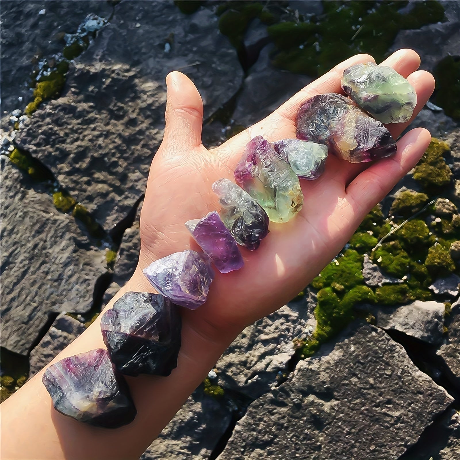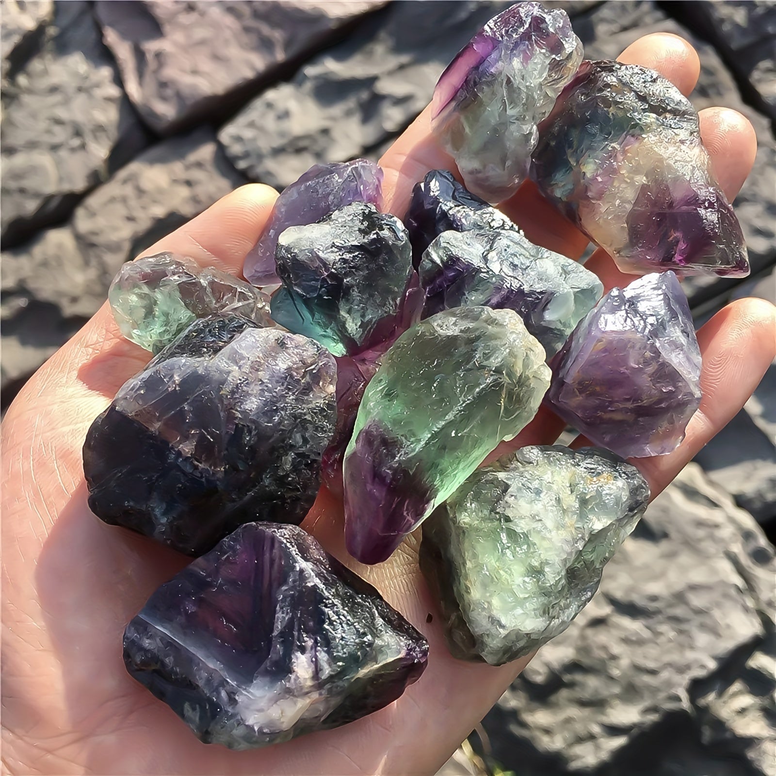 Beautiful raw fluorite stones that are perfect for cabbing, tumbling, reiki, and crystal healing. Each piece exhibits a rainbow of colors and is a great addition to any crystal collection.