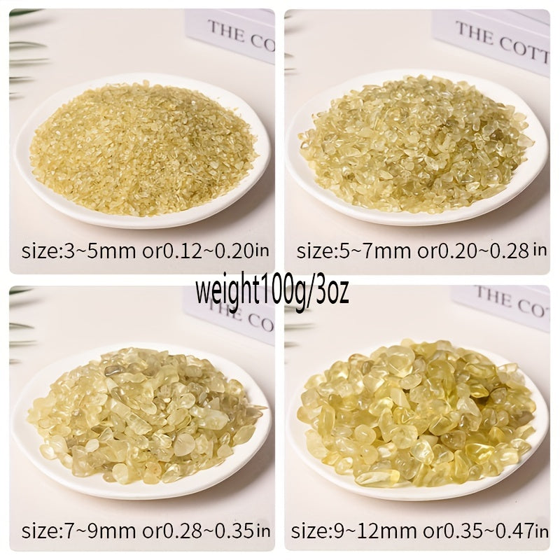 Enhance your space with these beautiful citrine crushed stones. They are perfect for decorative purposes, aromatherapy, diffusers, and more.