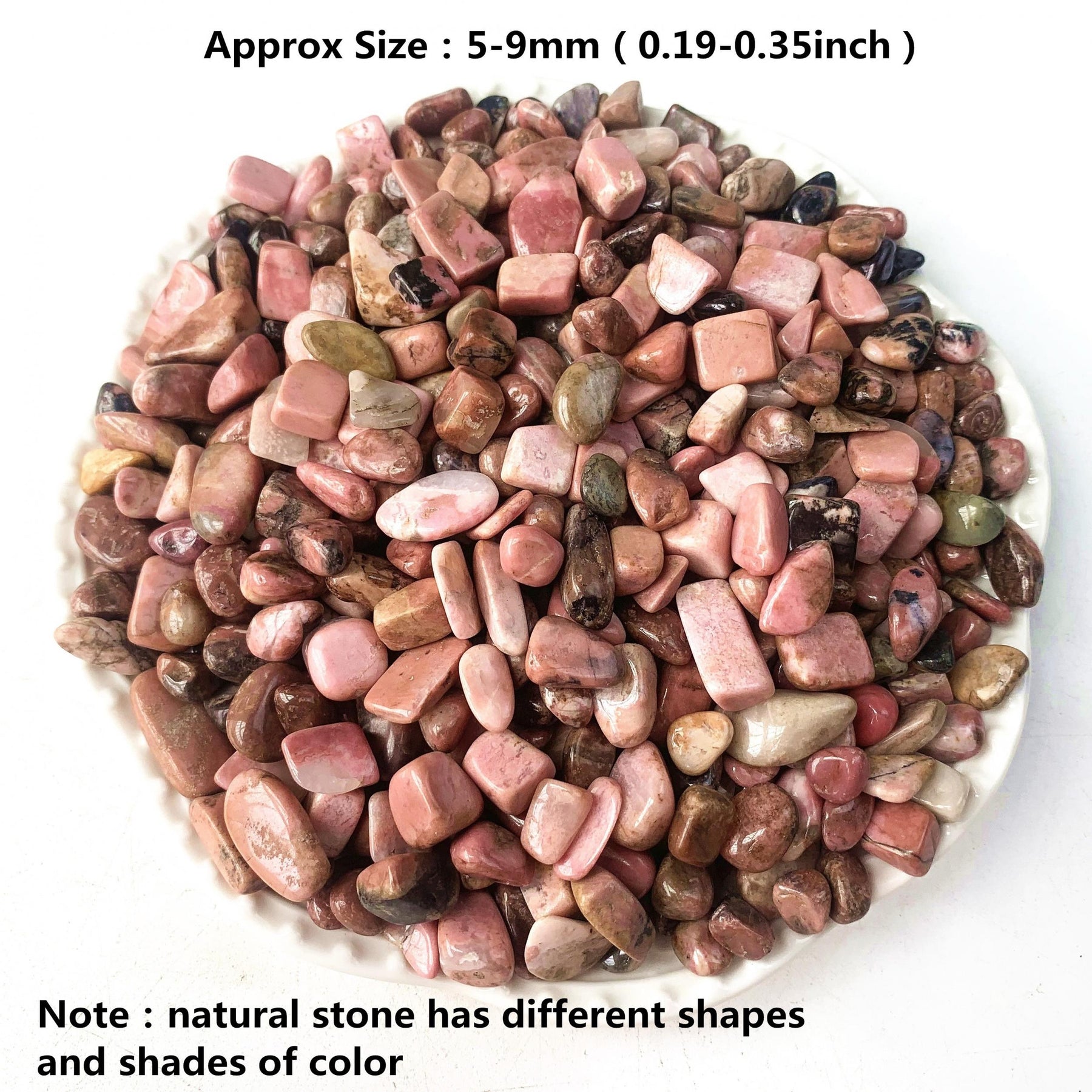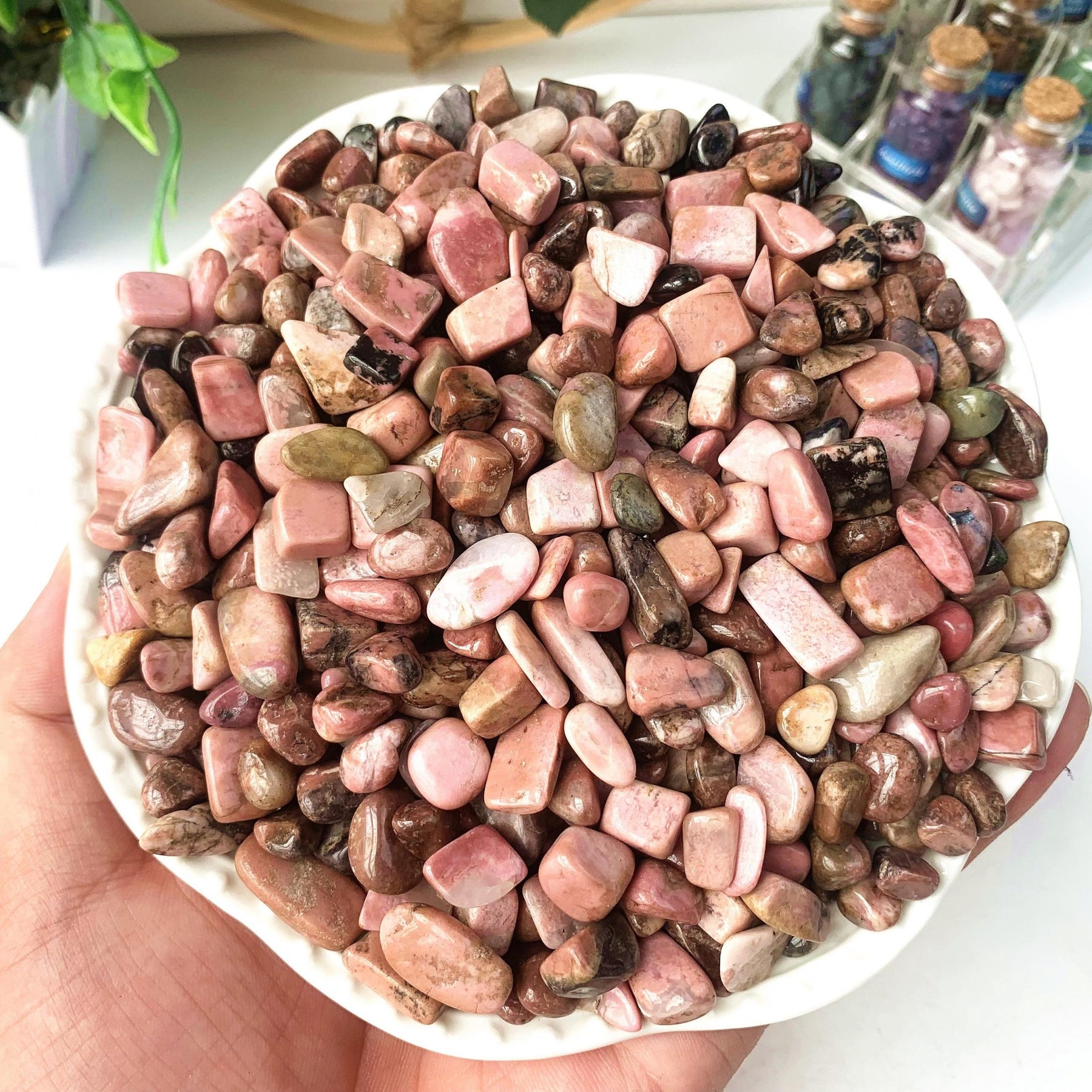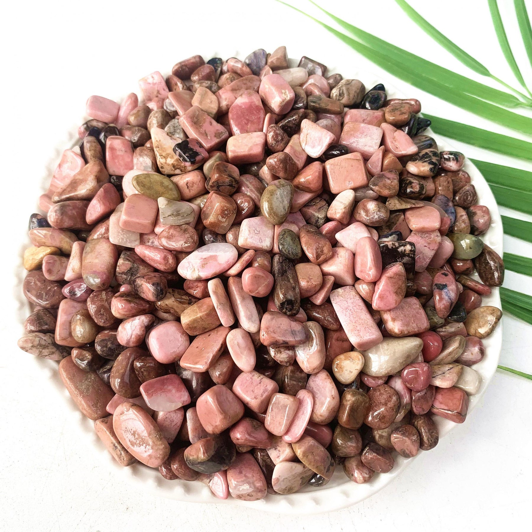Experience the healing power of Rhodonite with these polished stone crystal chips. Ideal for Reiki, yoga, energy therapy, and more.
