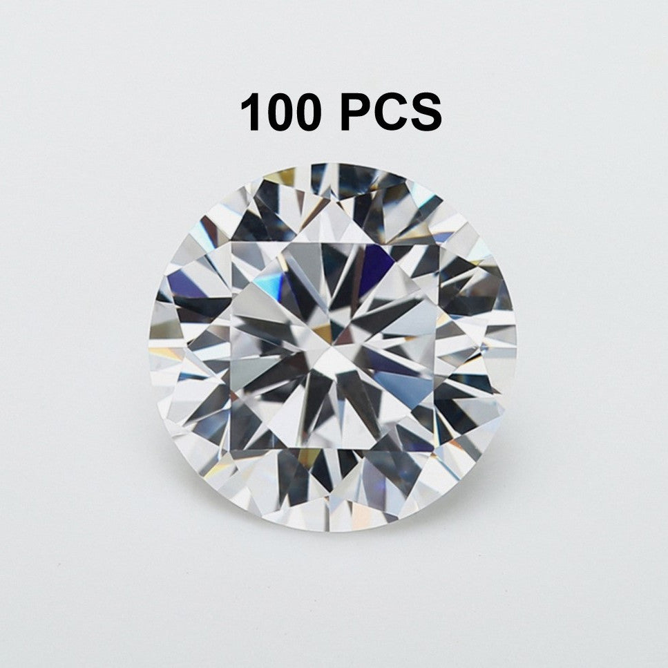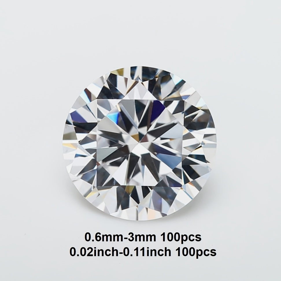 Enhance your jewelry with this set of 100 round machine-cut cubic zirconia stones. Perfect for crafting or adding sparkle to designs.