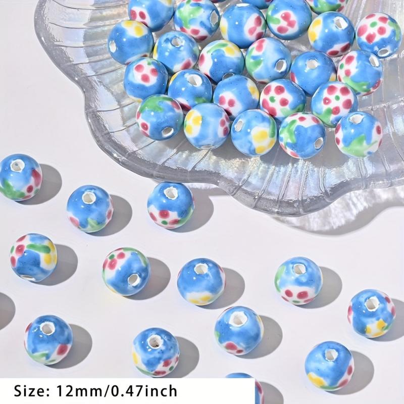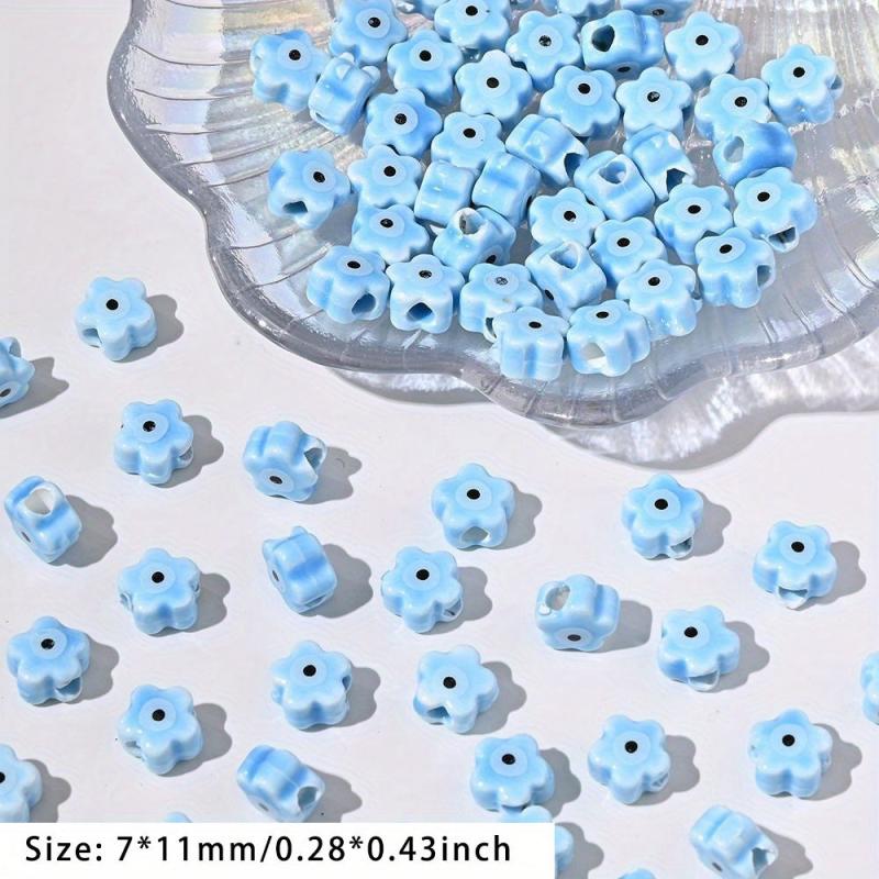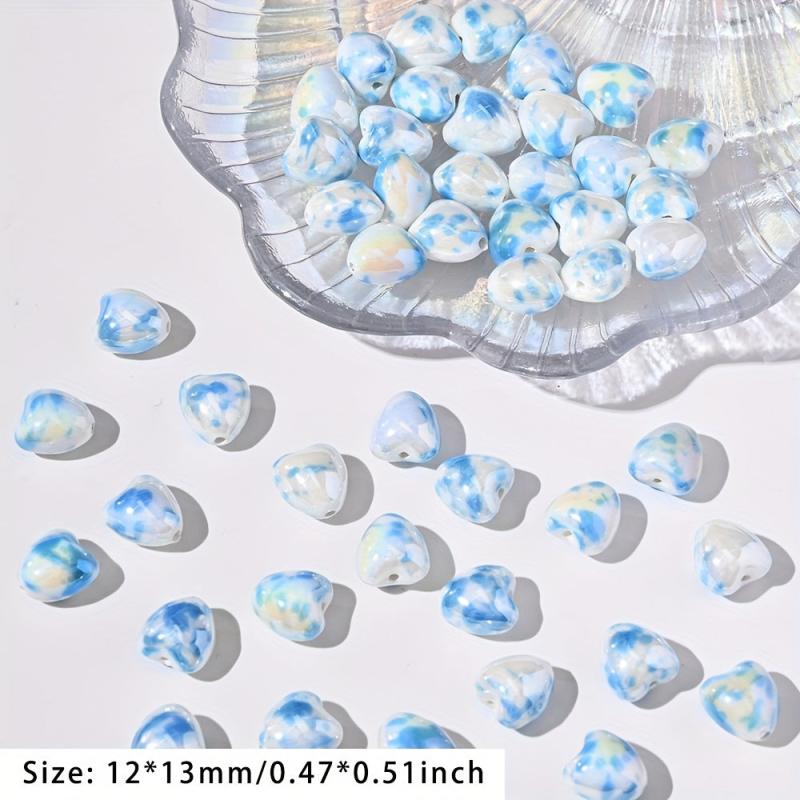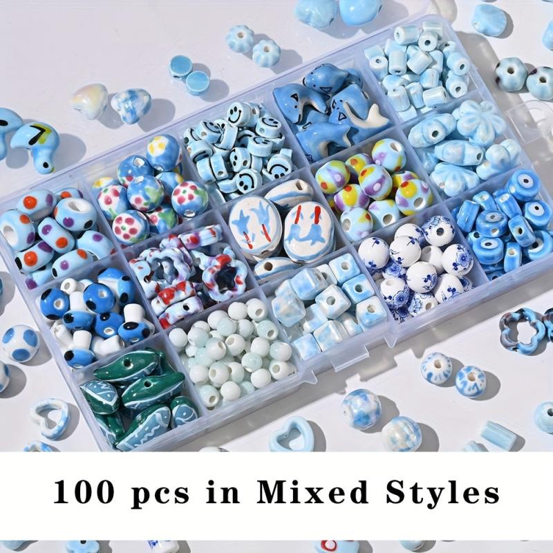 Explore your creativity with this set of 100 ceramic beads in various shapes including hearts, stars, flowers, and geometric patterns. Perfect for making personalized jewelry pieces.