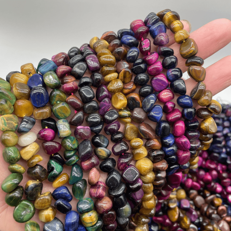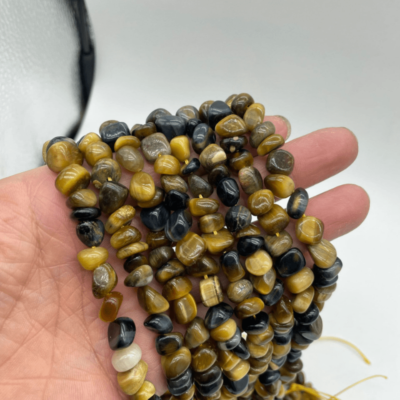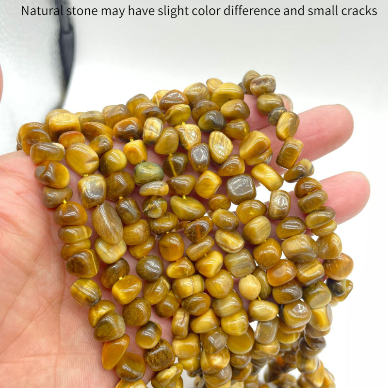 Create stunning jewelry with this pack of about 38pcs natural optimized tiger's eye beads. Ideal for necklaces, earrings, and bracelets.