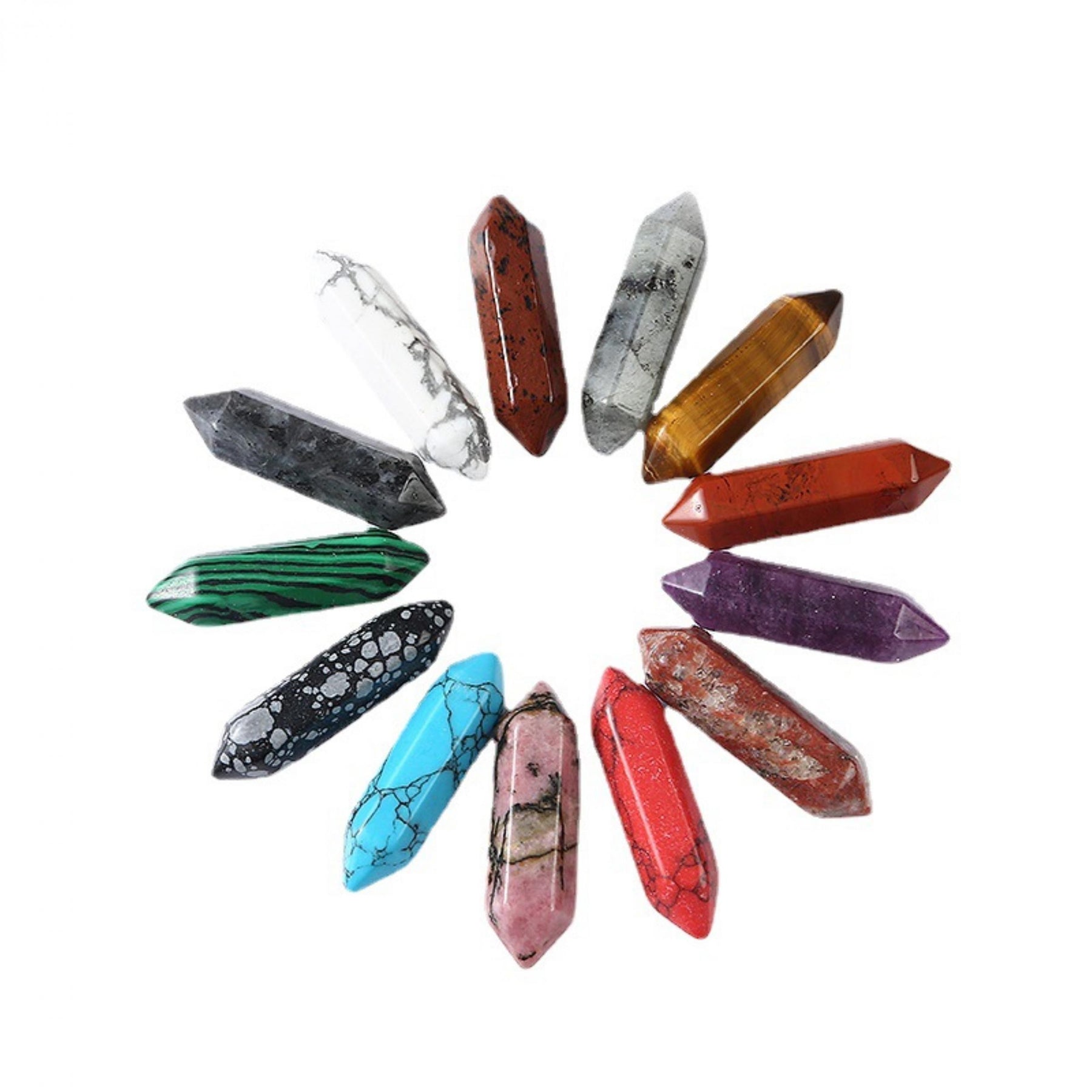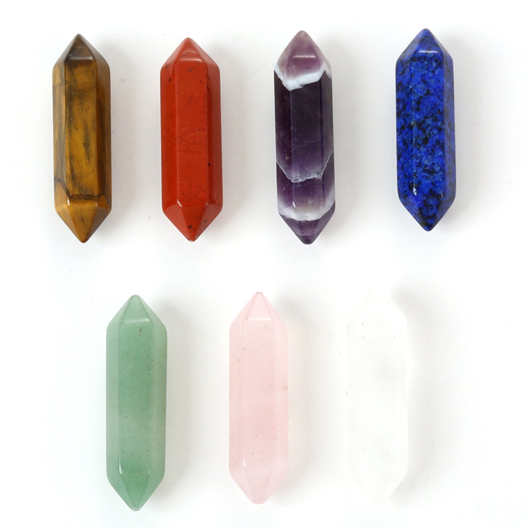 Enhance your energy balance and meditation practice with this set of 10 mini chakra healing crystals. Each natural quartz crystal is carved into hexagonal columns, perfect for reiki and energy healing.
