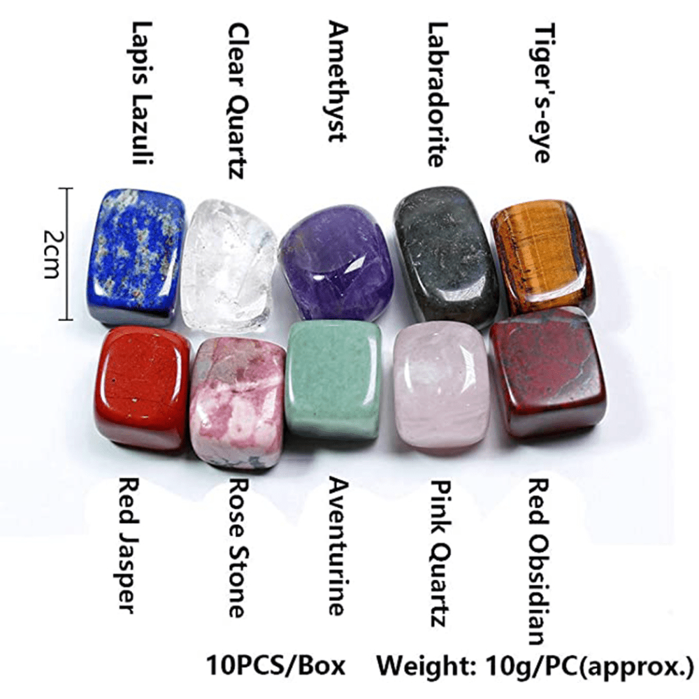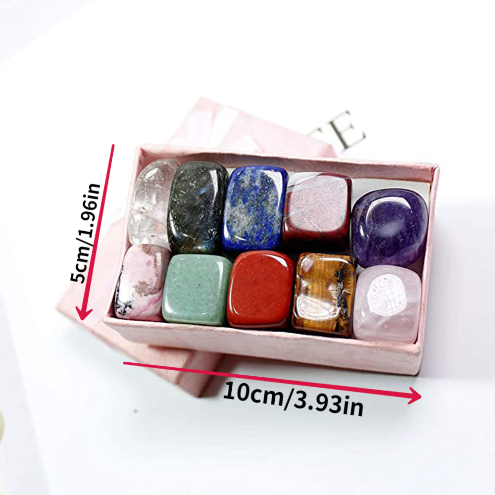 Bring positive energy into your space with this set of 10 natural gemstones. Each stone is unique and can be used for chakra healing, jewelry making, or home decoration. Makes a great Christmas gift!