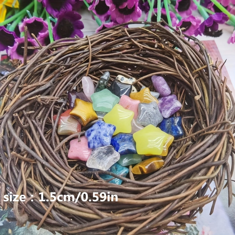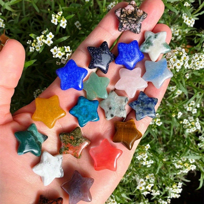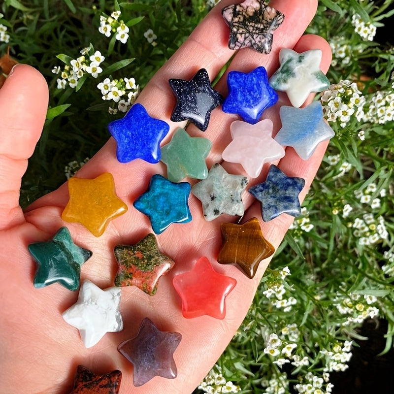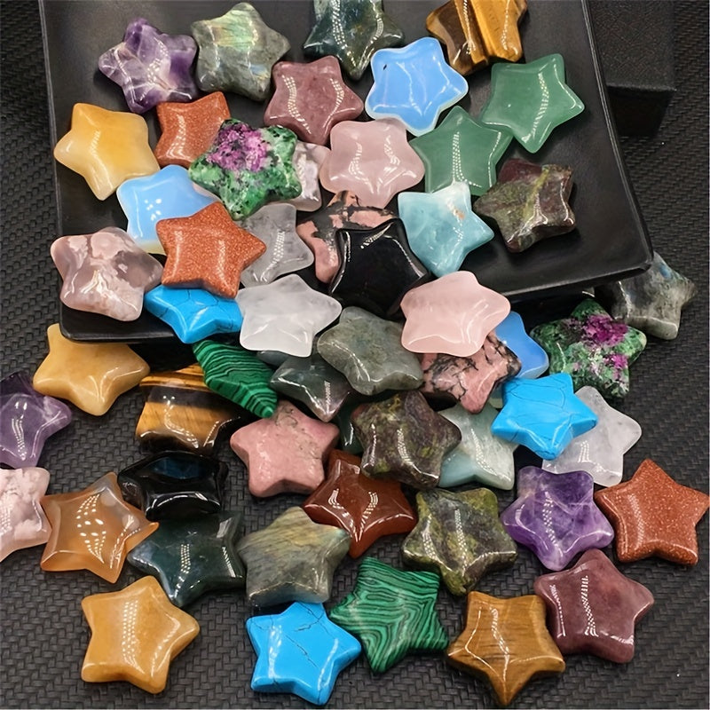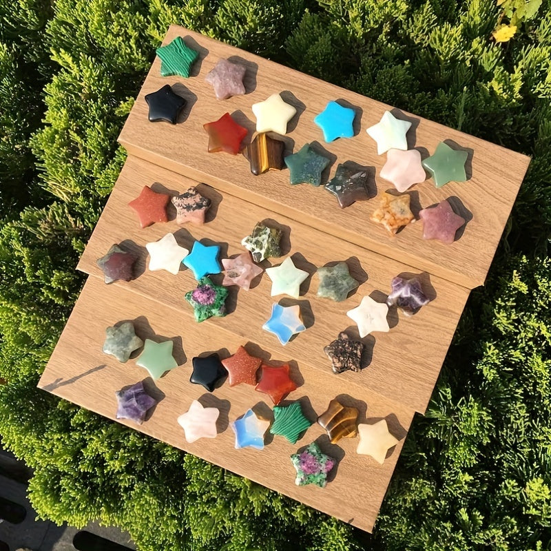 Enhance your energy with this set of 10 natural mix quartz crystal star carvings. Perfect for Reiki healing practices and bringing positive vibrations.