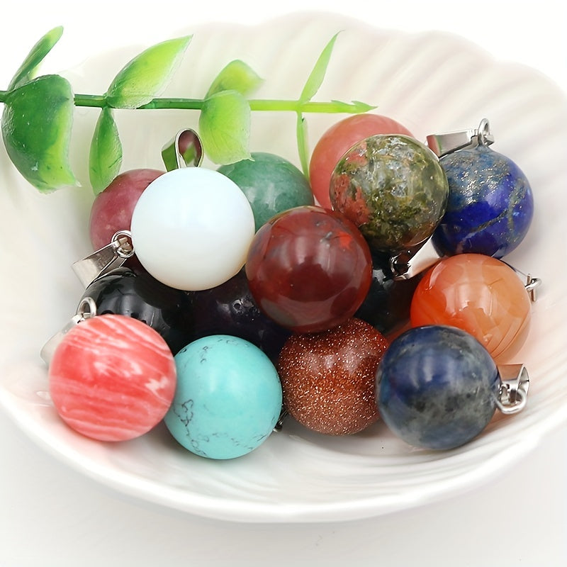 Create your own unique jewelry pieces with these 12pcs of random natural stone round pendant charms. Perfect for DIY jewelry making projects.
