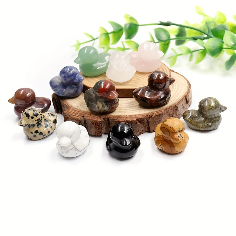 12pcs Stone Carved Ornaments Duckling Animal Art Crafts Reiki Healing