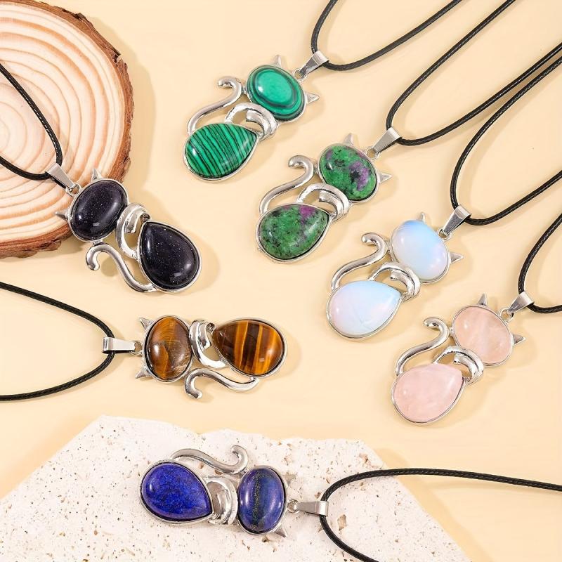 Get creative with this set of 12 natural stone cat-shaped pendant necklaces. Perfect for making your own unique jewelry pieces. Comes with a storage bag, great for holiday gifts.