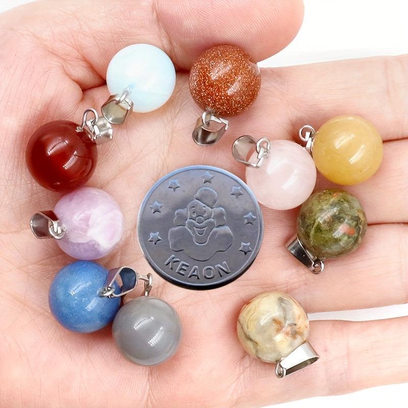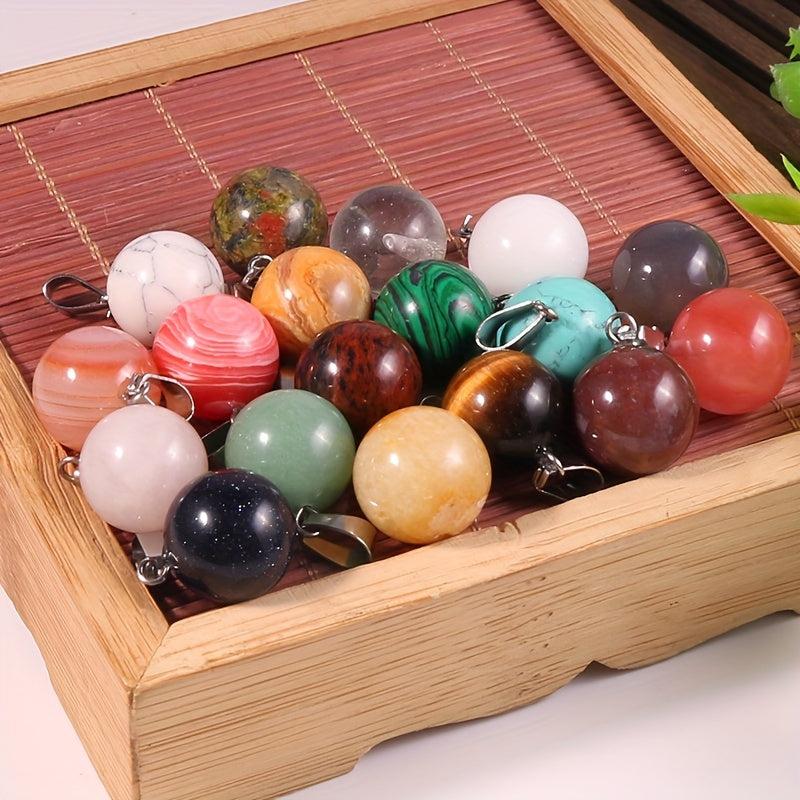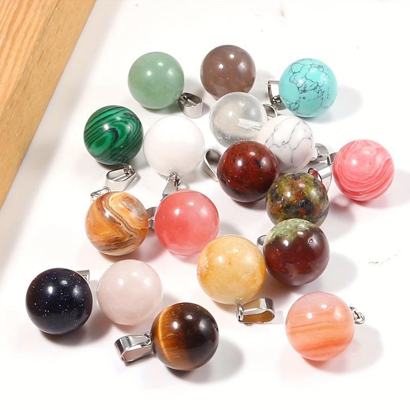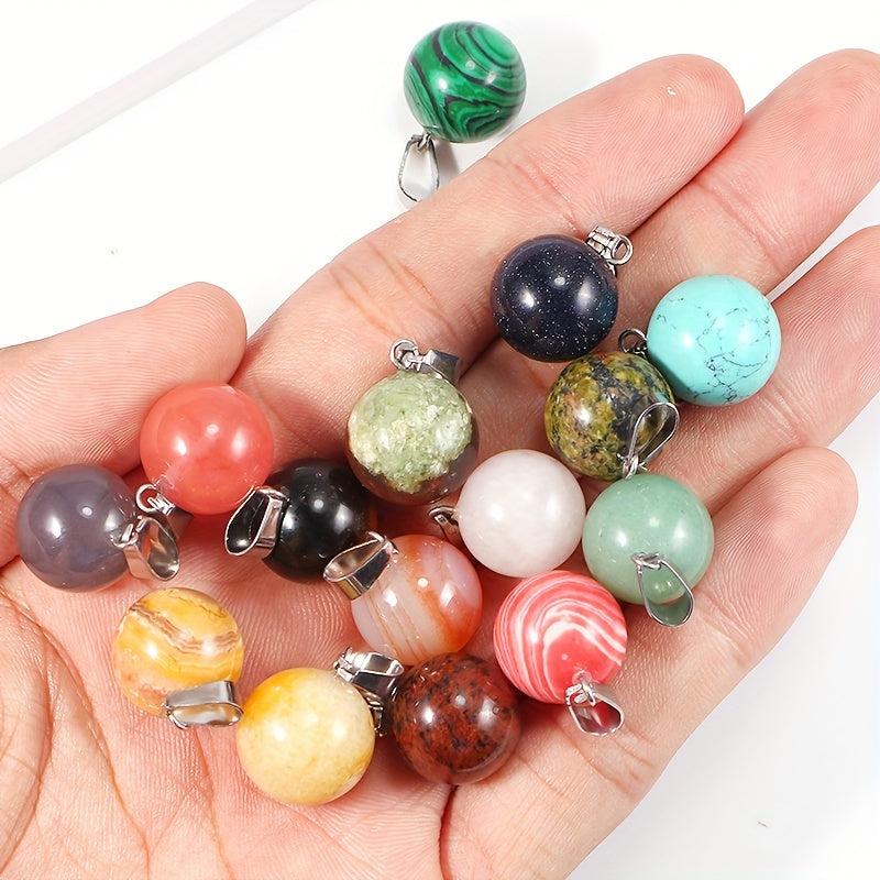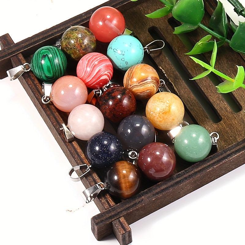This set includes 15 natural stone round ball pendants made of crystal quartz, perfect for creating your own necklaces and jewelry pieces. Each pendant is unique and adds a touch of natural beauty to your designs.