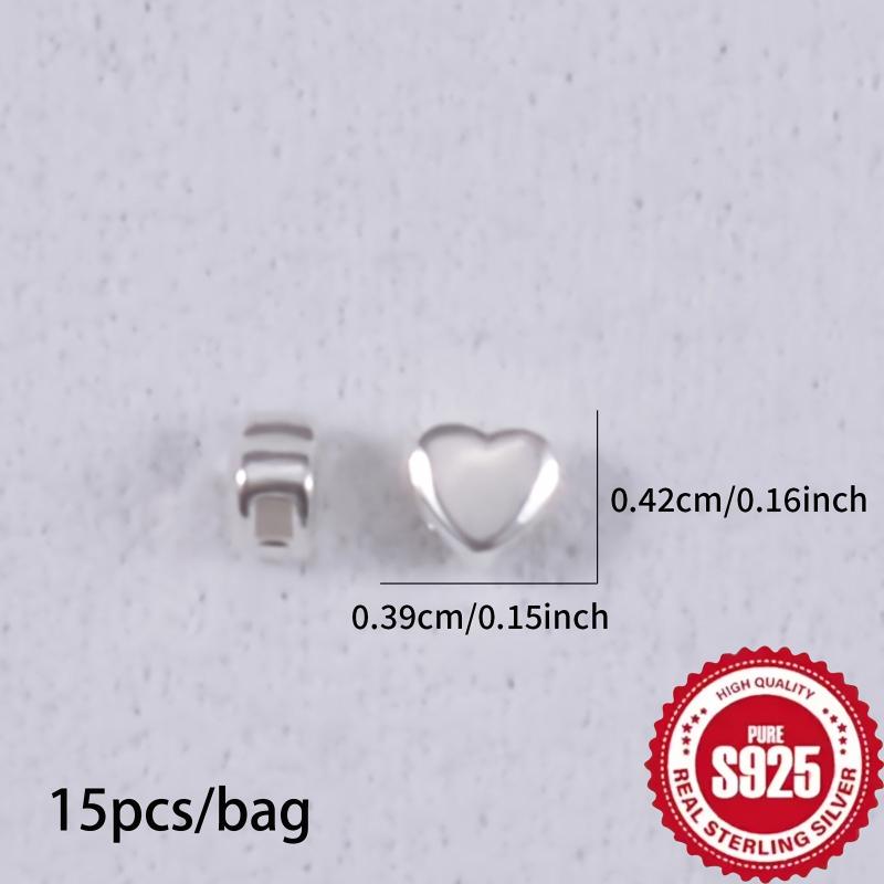 Get creative with these 15 heart-shaped bead charms made of pure S925 sterling silver. Perfect for bracelets, anklets, and necklaces. High-quality craft supplies for your DIY projects.