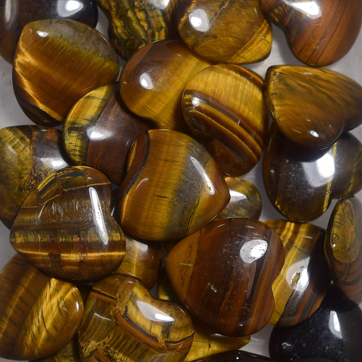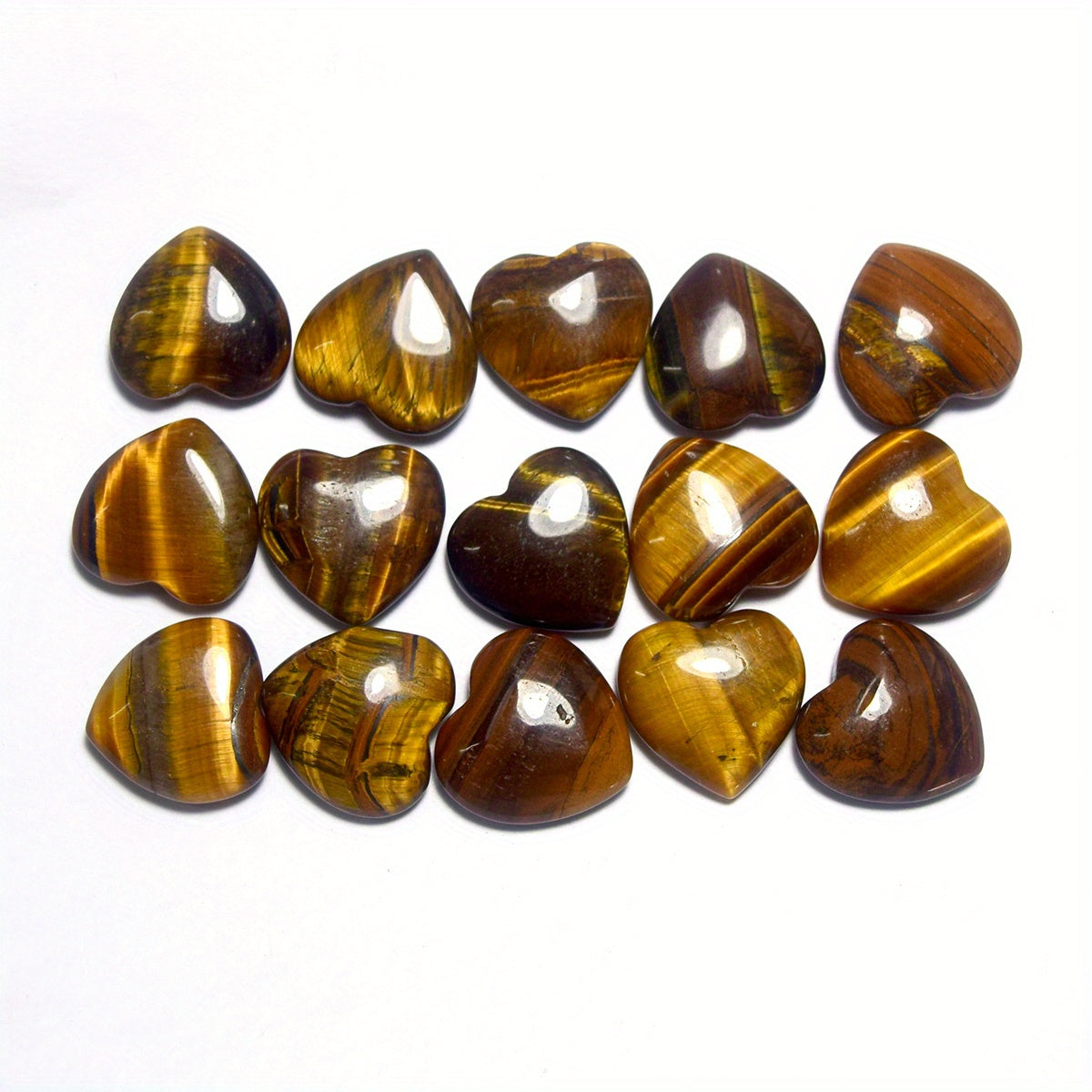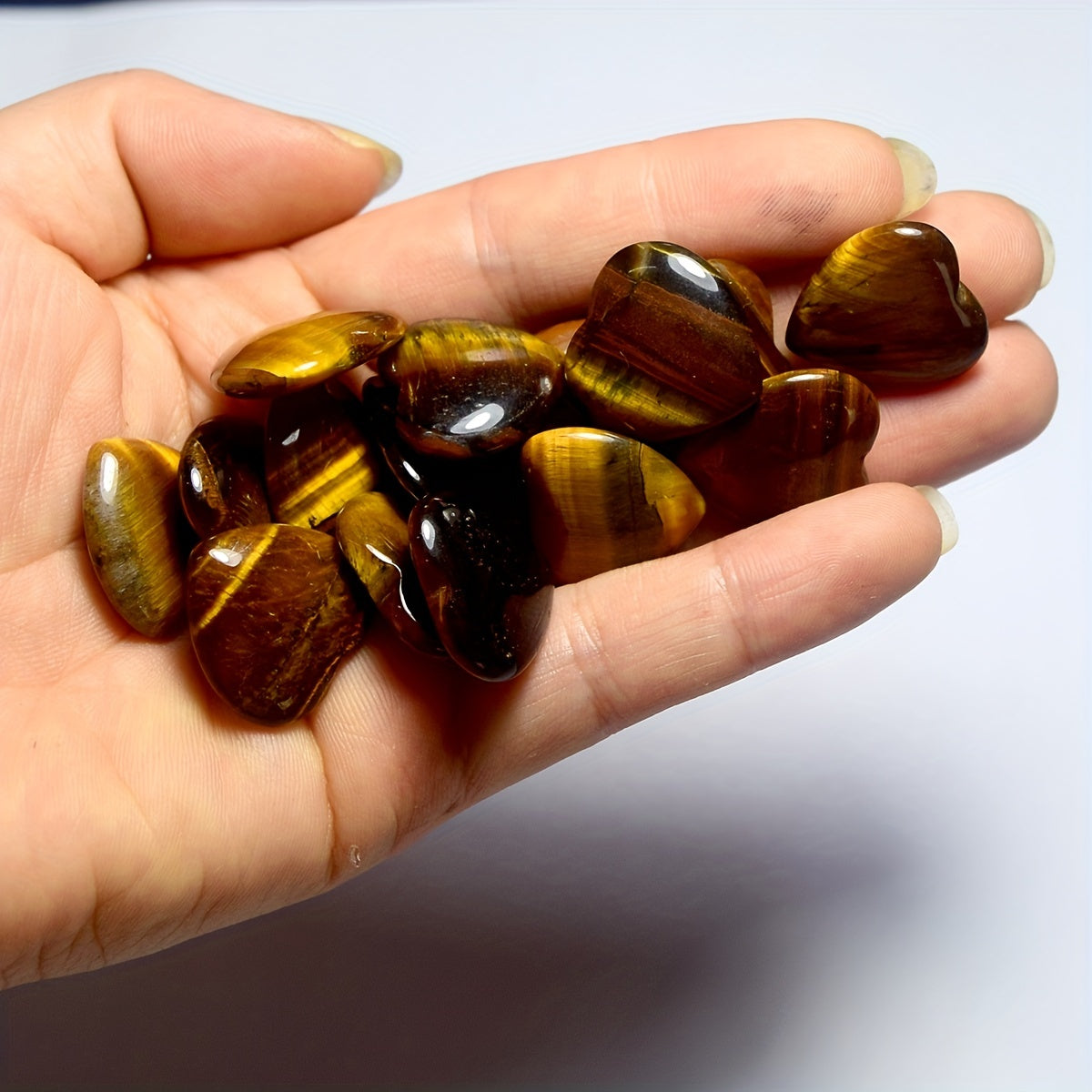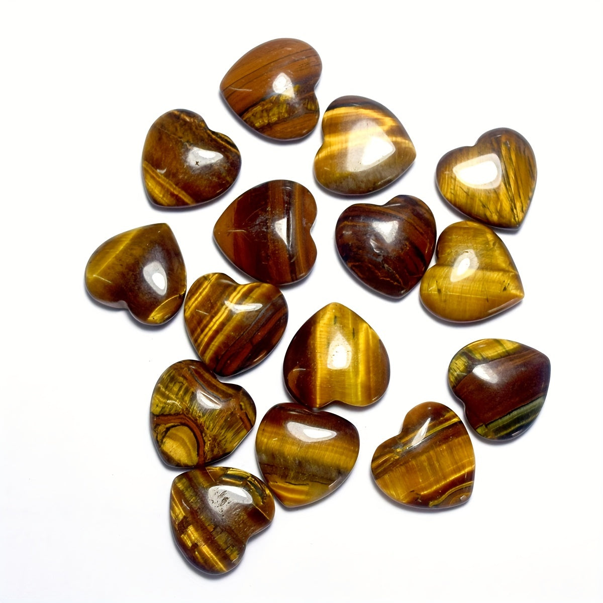 Enhance your energy balance with this set of 15 mini heart-shaped Tiger Eye crystals. These natural stones are perfect for carrying in your pocket or using during Reiki sessions.
