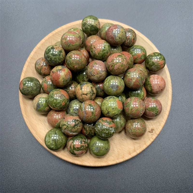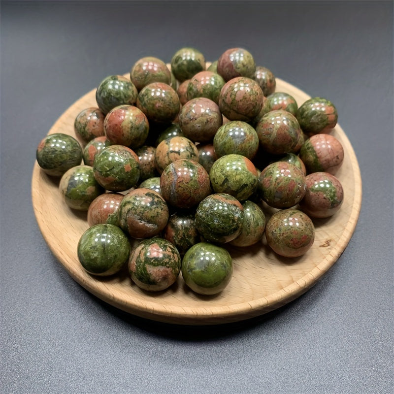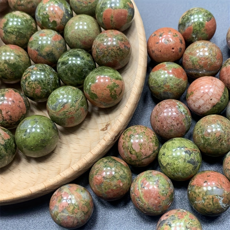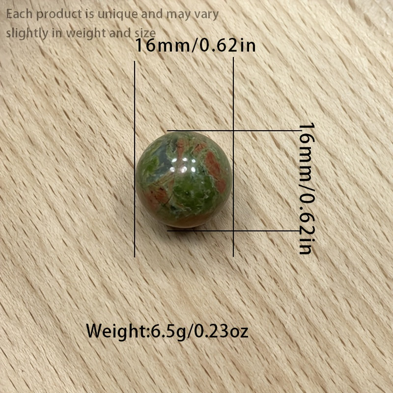 Enhance the ambiance of your space with this 16mm natural Unakite crystal ball. Perfect for healing and decorative purposes.