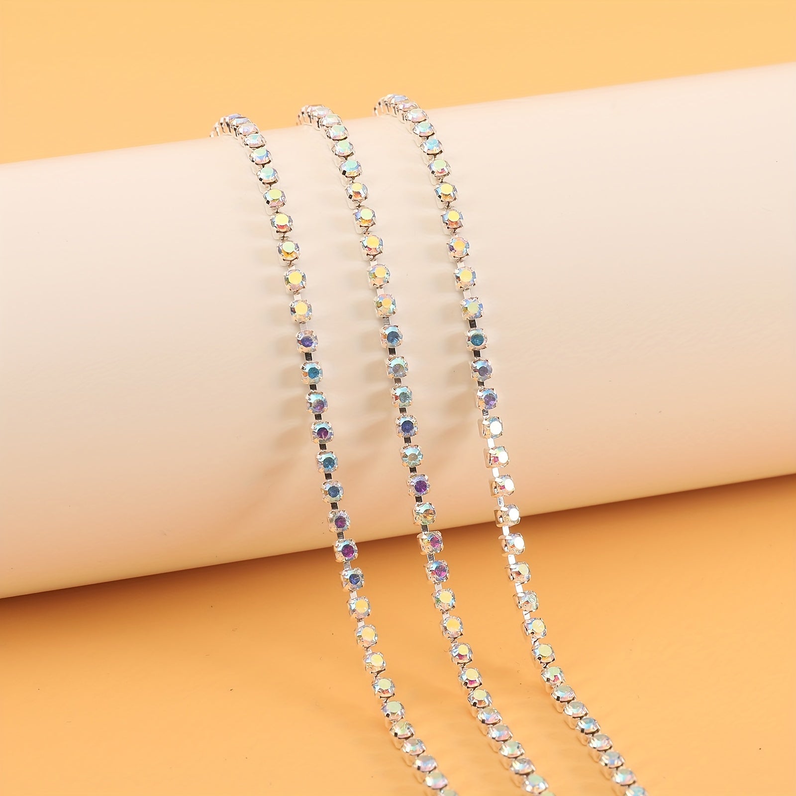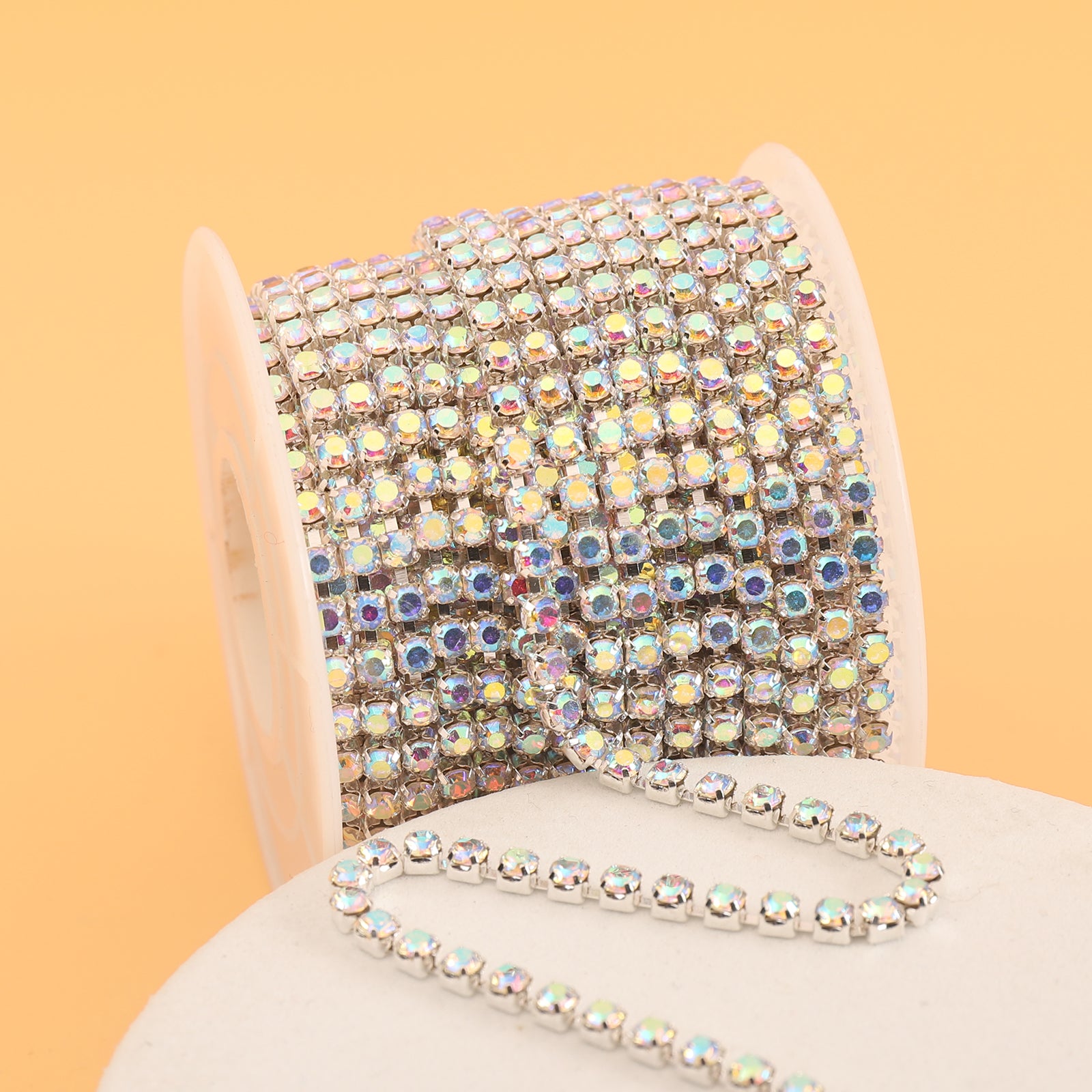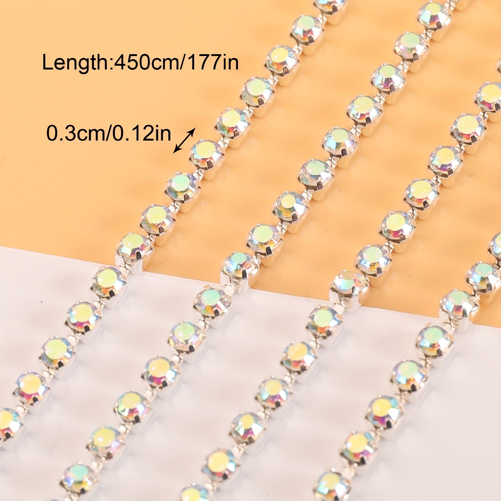 This 177 17inch Flash Silver AB Rhinestone Chain is perfect for decorating mobile phone cases, shoes, clothing, and more. Add a touch of sparkle to your DIY projects!