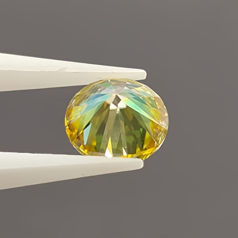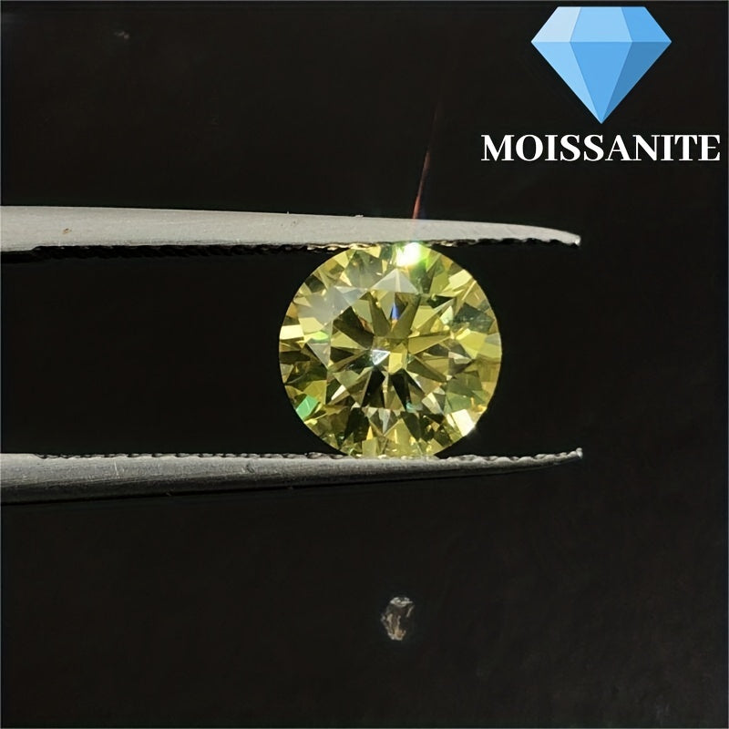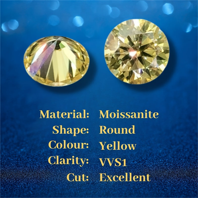 High-quality moissanite loose stone with brilliant cut, ideal for creating stunning jewelry such as engagement rings or wedding bands. D colorless yellow hue and VVS1 clarity provide exceptional brilliance.