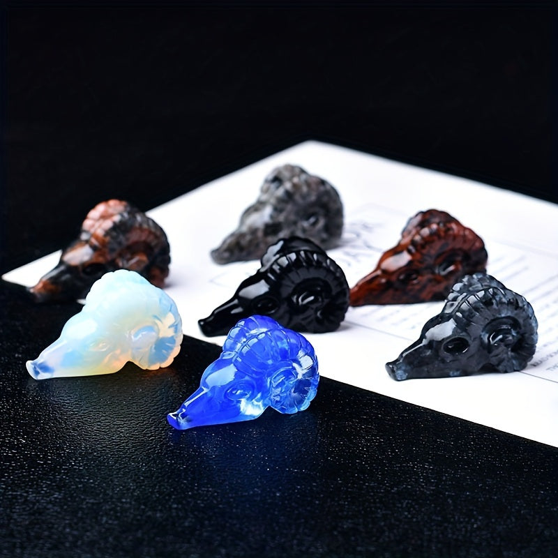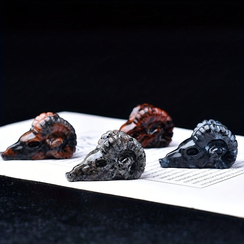 This Crystal Carved Goat Skull Crystal Statue is a unique pocket decoration made from bare stone crystal. It can be used as a meditation stone or healing stone, making it a perfect gift for crystal enthusiasts.