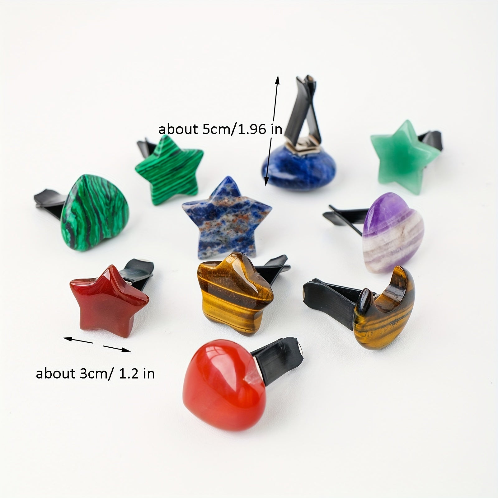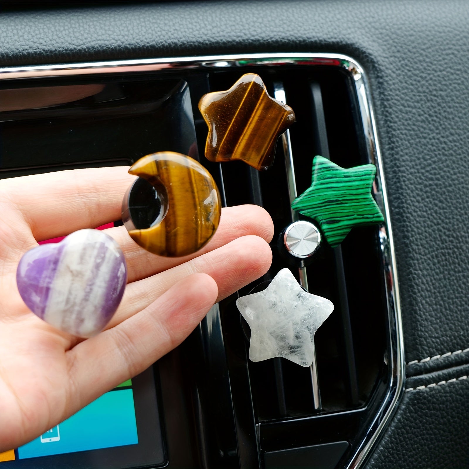 Enhance your driving experience with these natural gemstones car vent clips. Enjoy the healing properties of moon, star, and heart statues while adding a touch of style to your car.