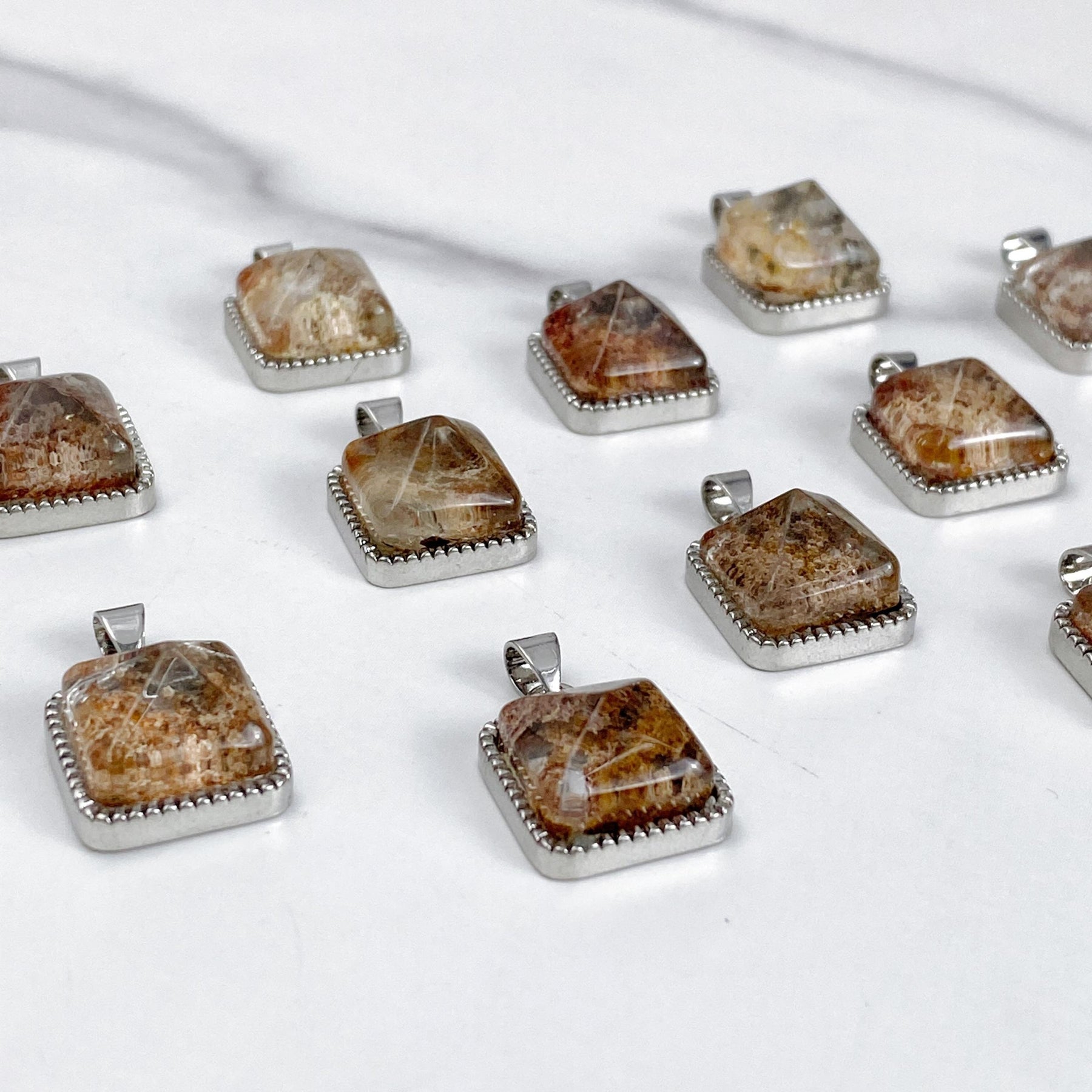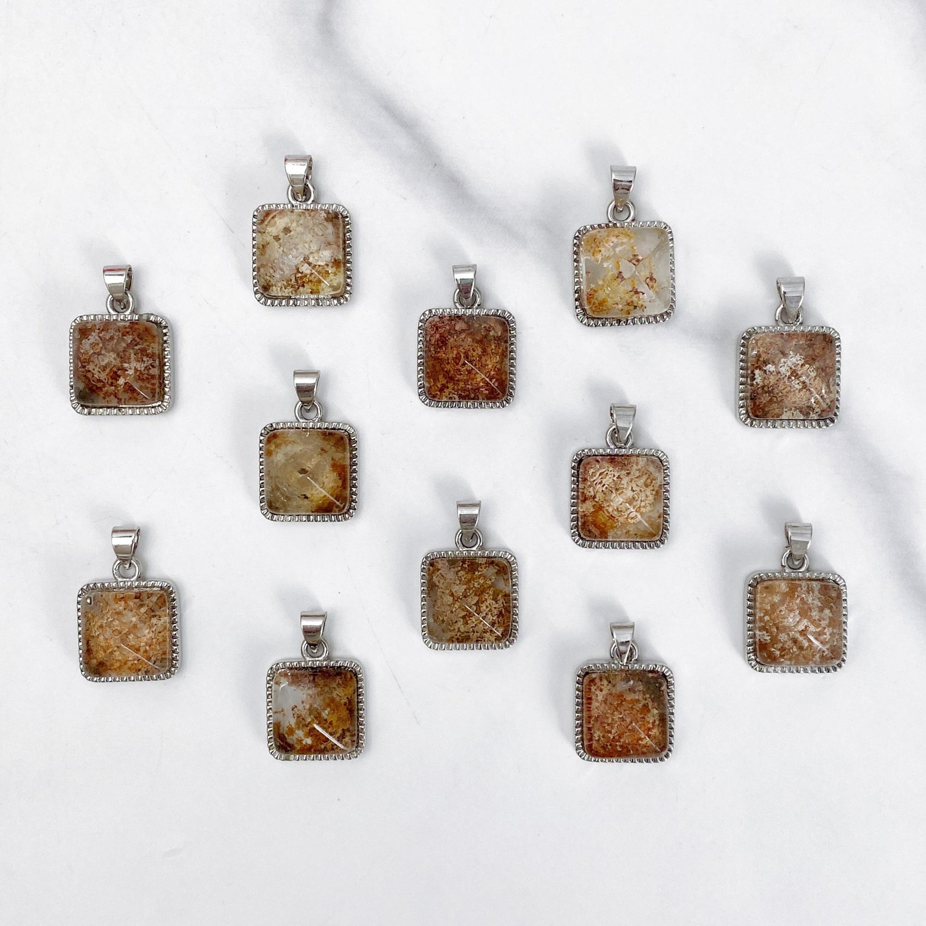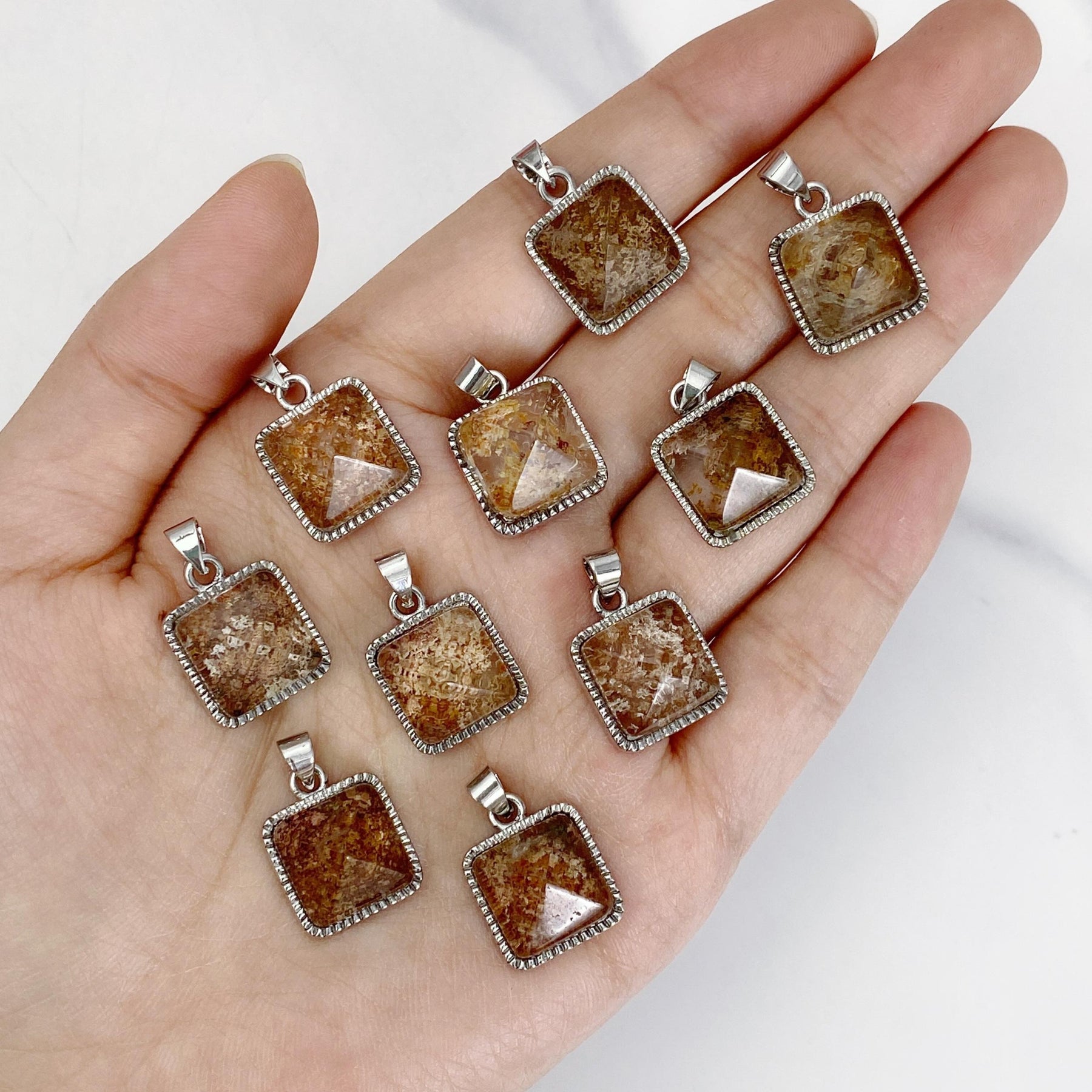 This pendant features a cube shape made of natural gem healing crystal, perfect for energy balancing and spiritual healing.