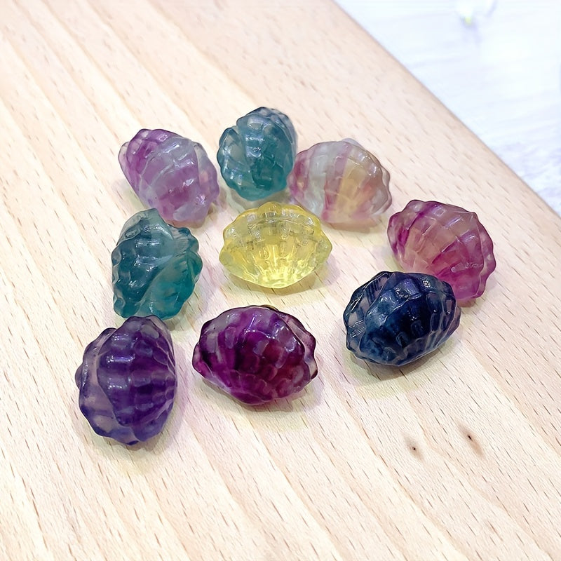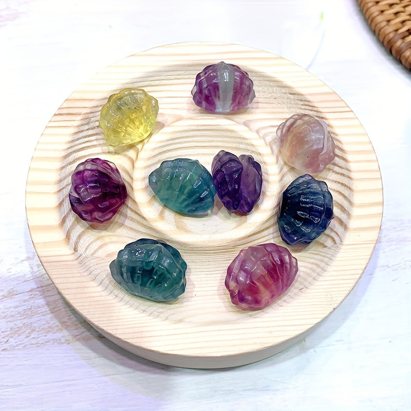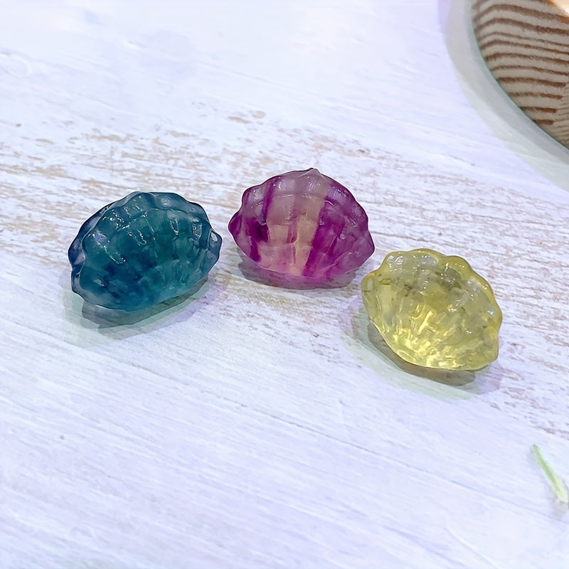 This beautifully crafted fluorite scallop shell carving brings positive energy and vitality to your space.