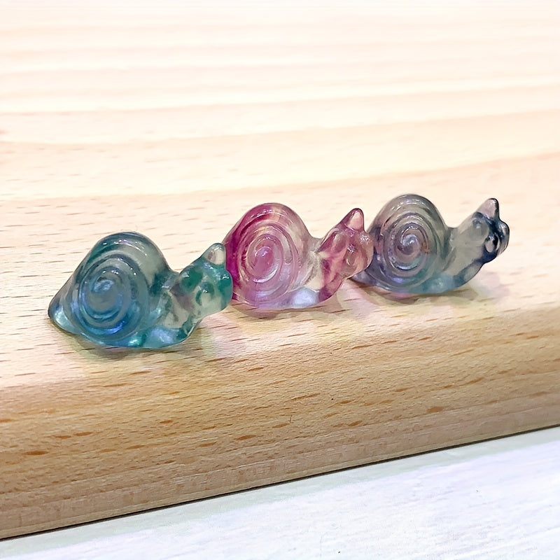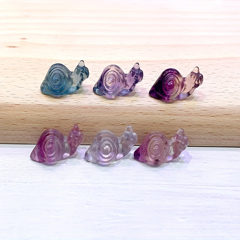 Bring the calming and protective energies of fluorite with this small snail carving. Perfect for healing and energy work.