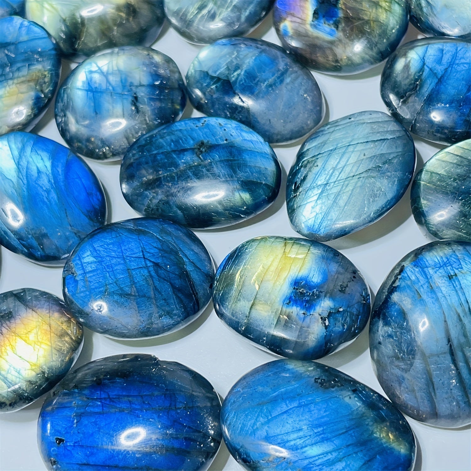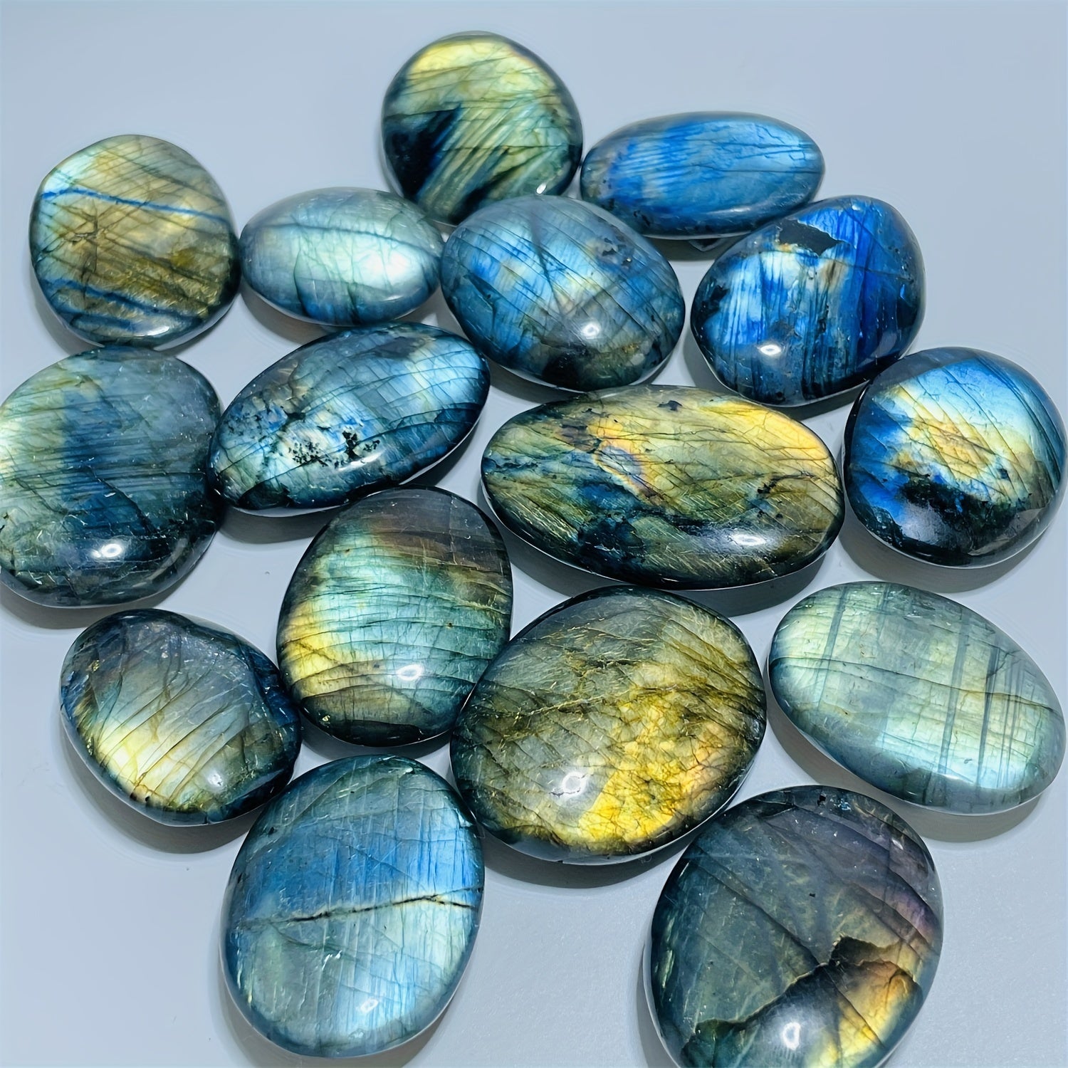 Beautiful natural labradorite oval pendant with double-sided reflection. Flashing crystal ideal for DIY projects, home decoration, and crystal healing practices.