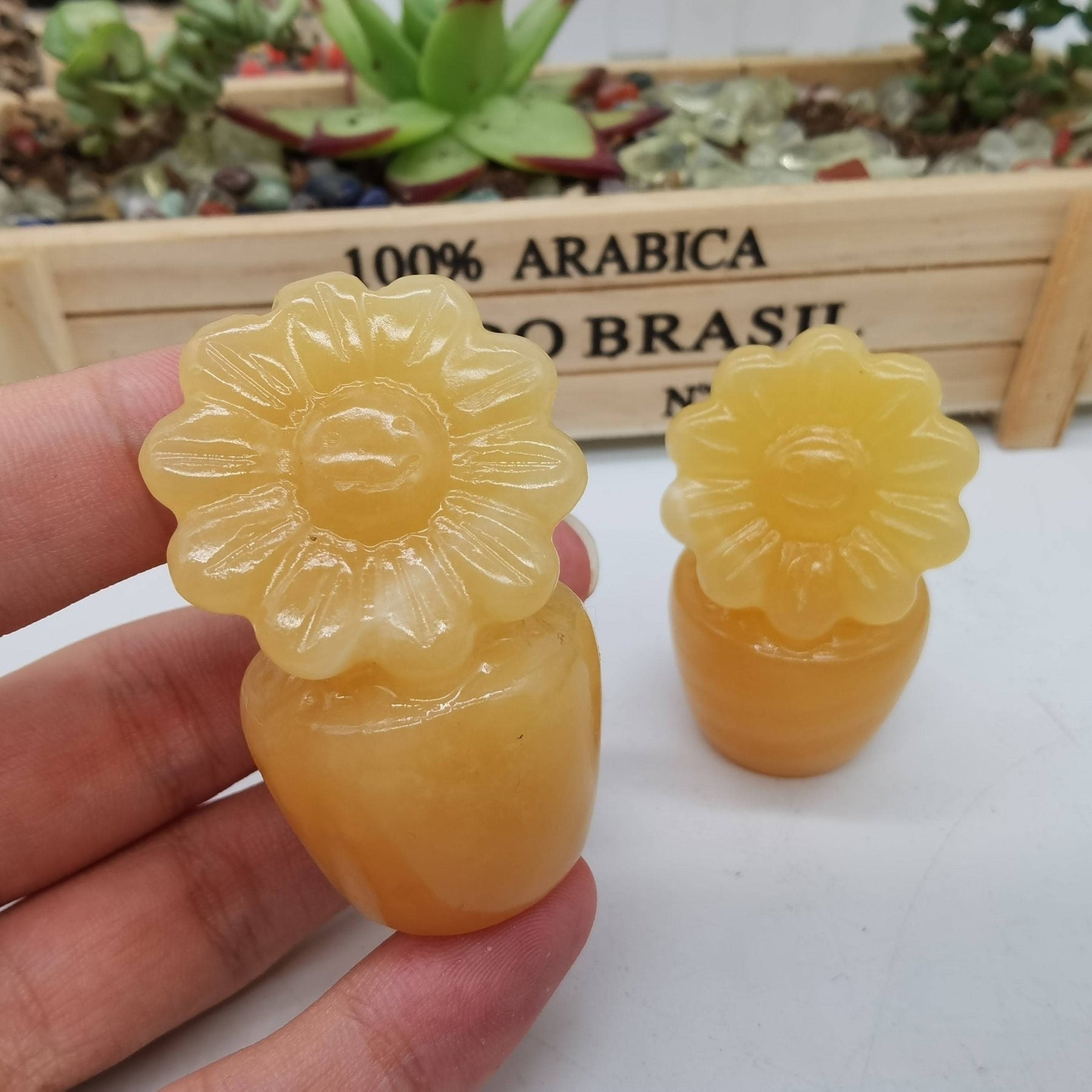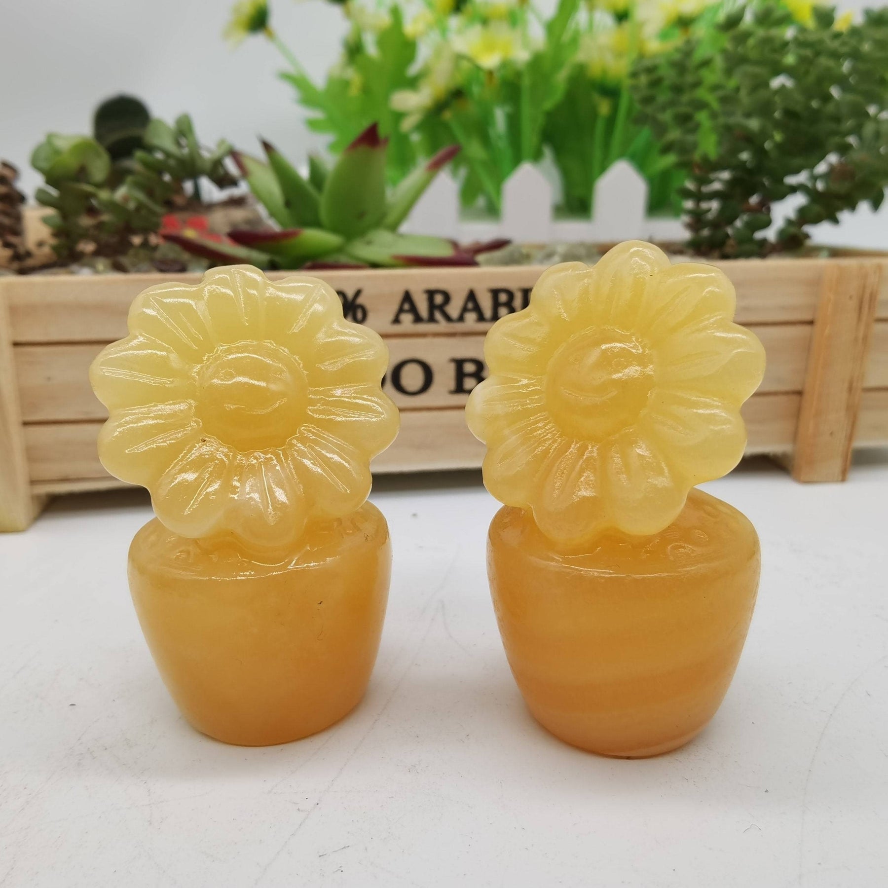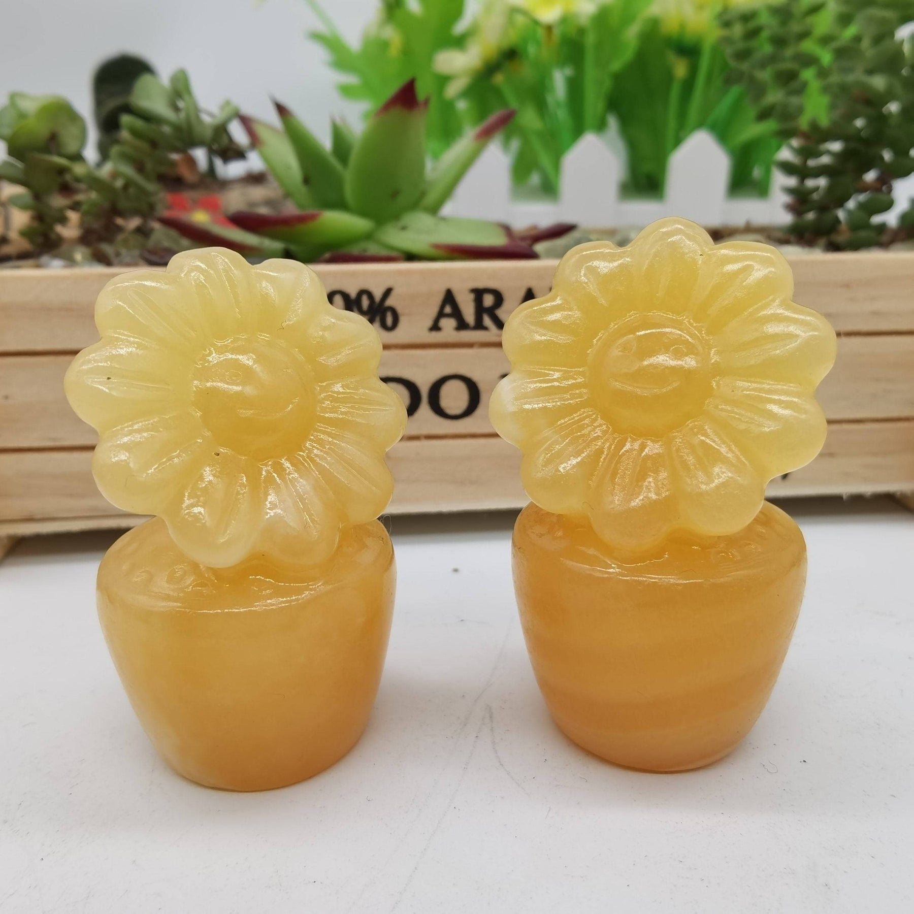 1PC Natural Yellow Calcite Sunflower Crystal Potted Flower Pot