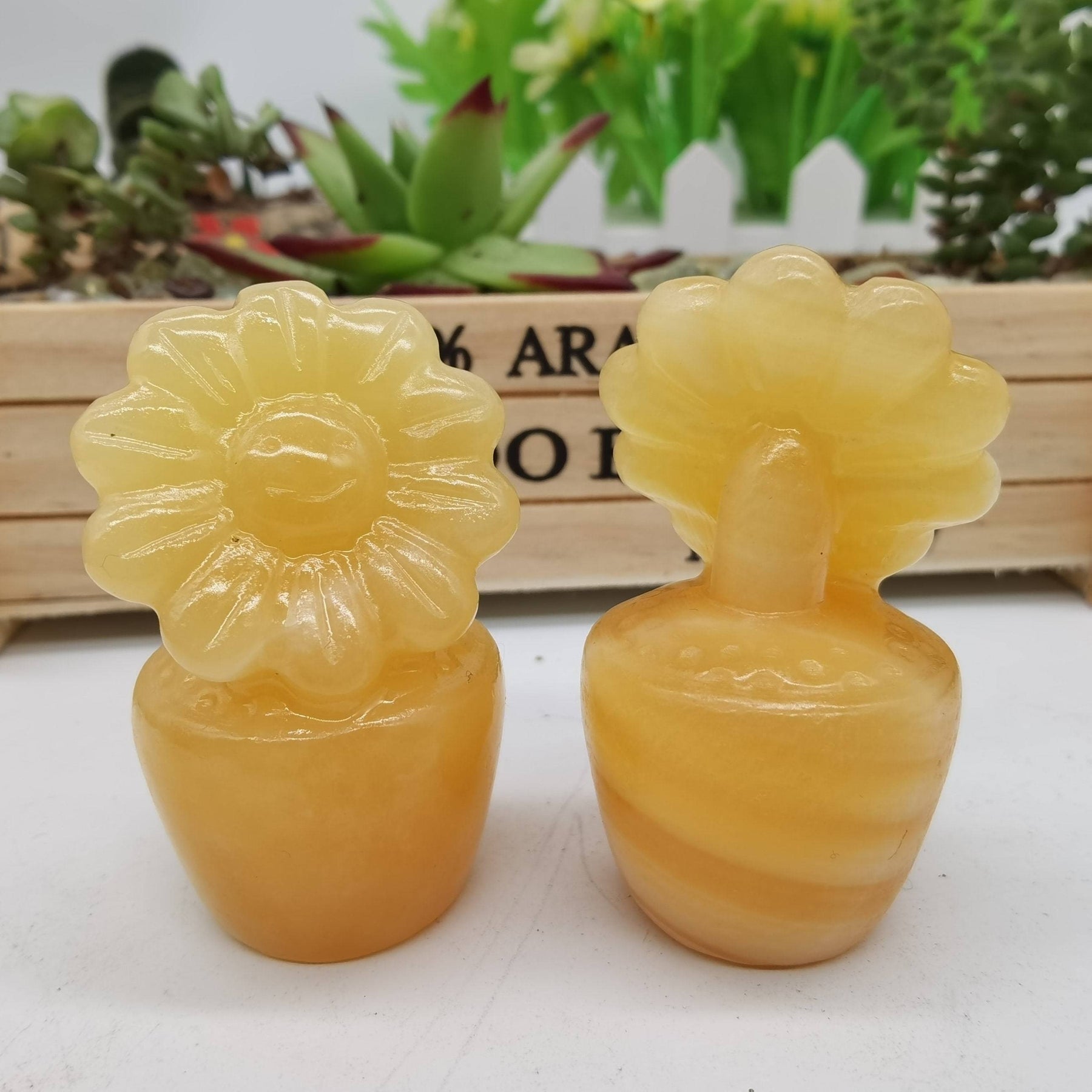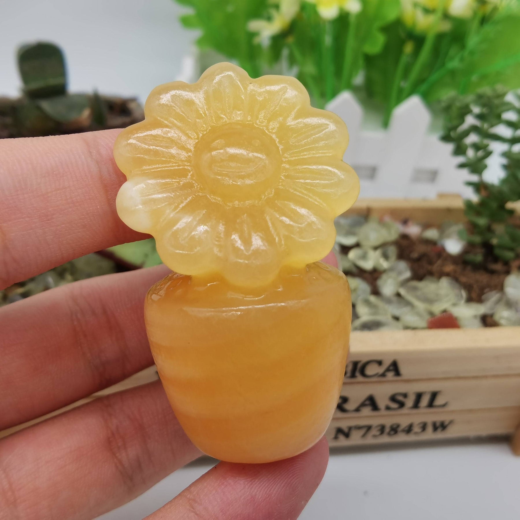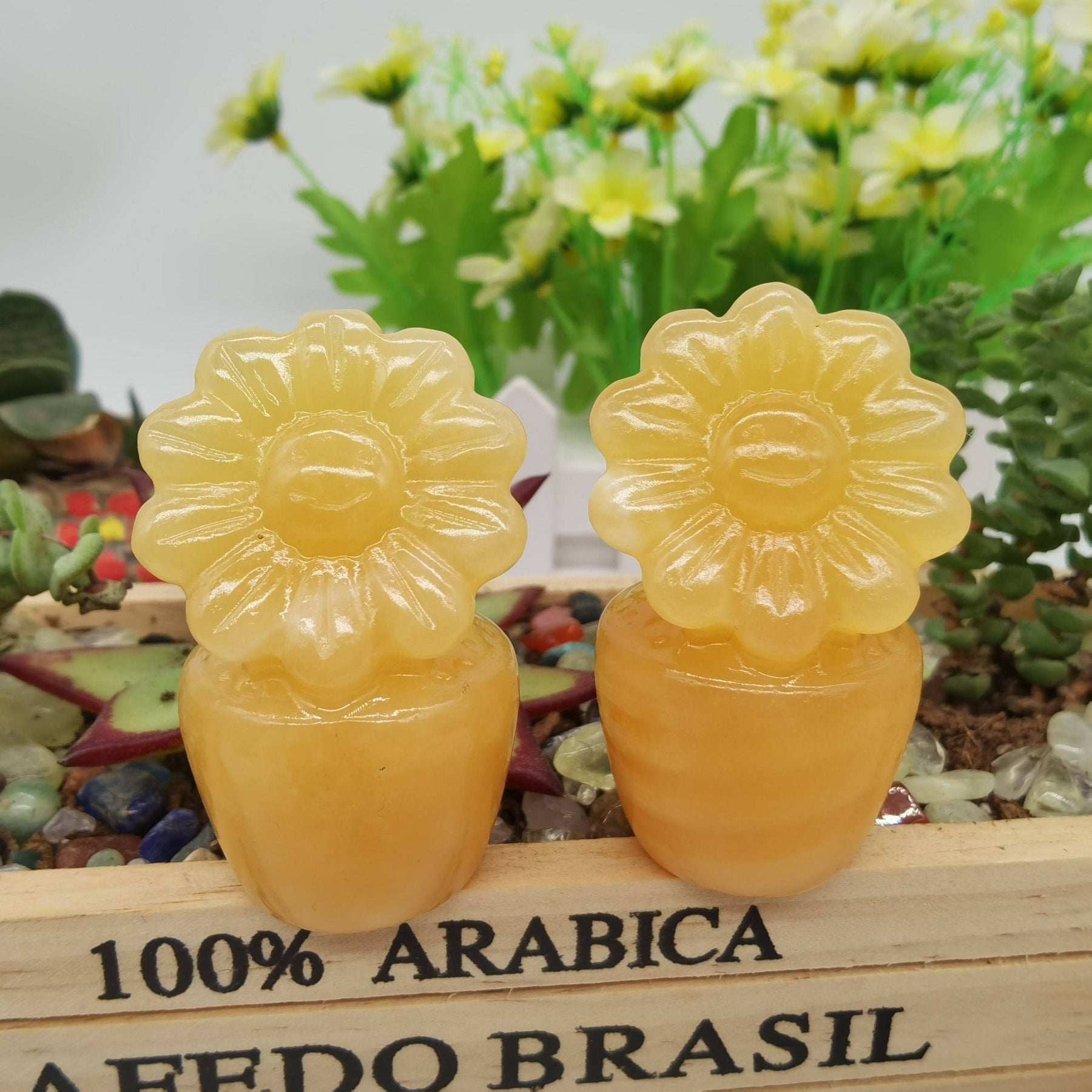1PC Natural Yellow Calcite Sunflower Crystal Potted Flower Pot