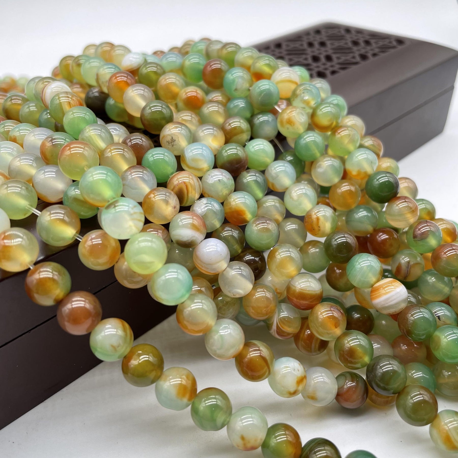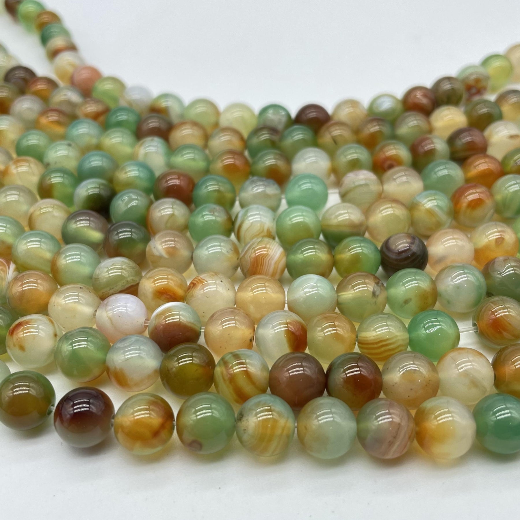 These beautiful red and green agate round beads are perfect for jewelry making. Create your own unique bracelet or necklace with these natural stone agate beads.