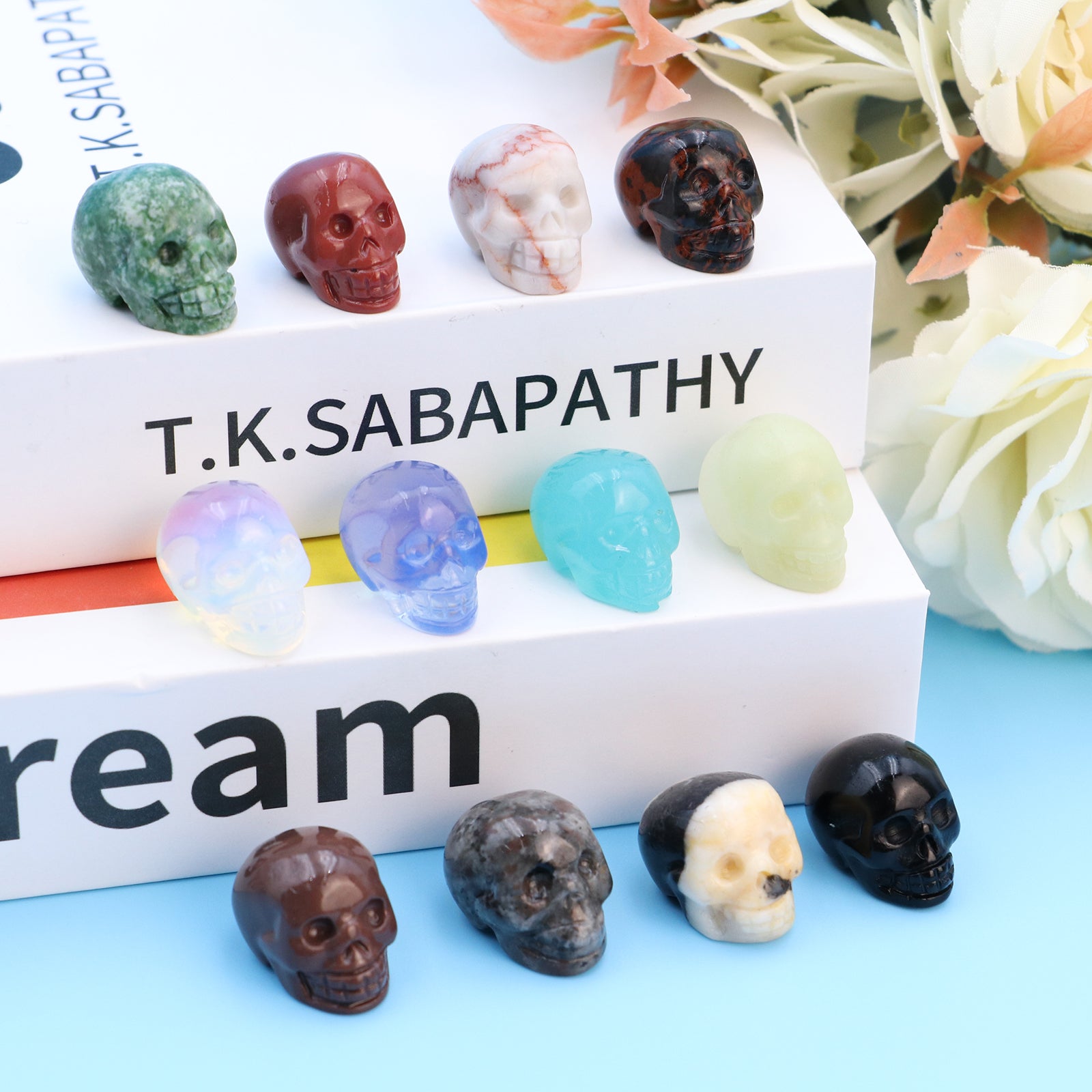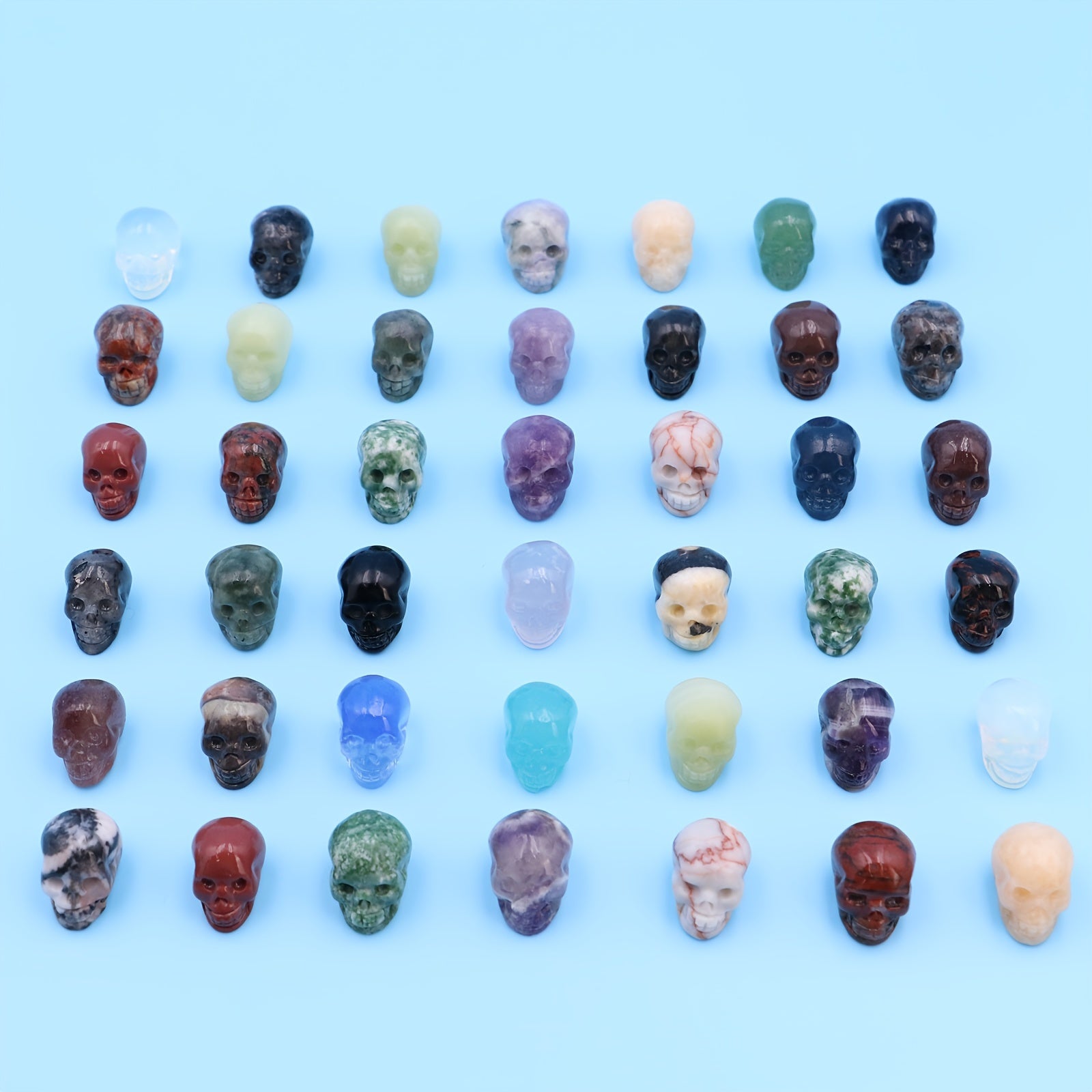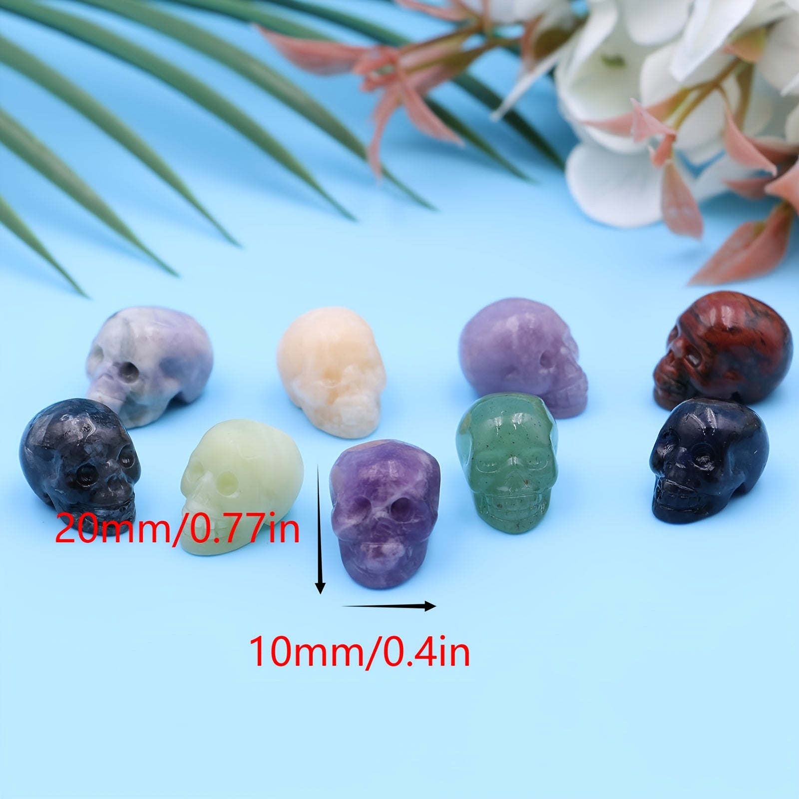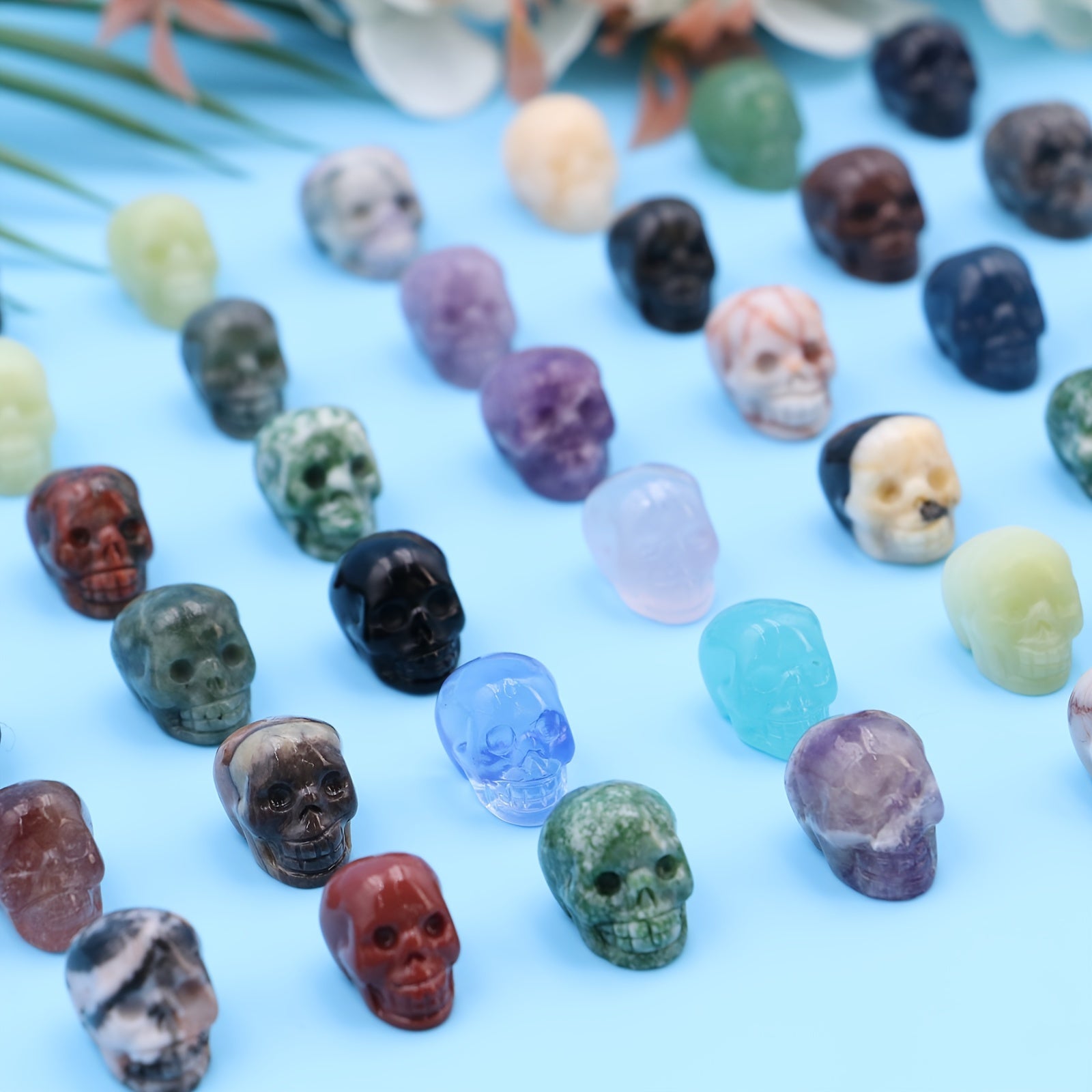 These hand-carved skull shaped gemstones are perfect for healing and meditation practices. Each crystal is unique and offers its own healing properties.