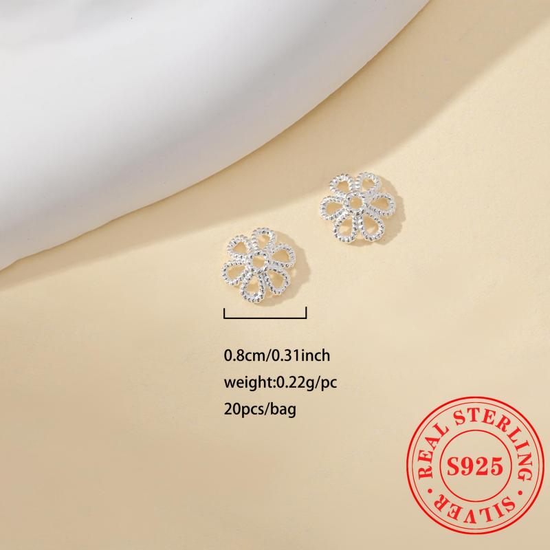 This 20-piece pack of S925 sterling silver flower cap bead holders is perfect for DIY projects. Use these accessories to hold loose beads in place on your bracelet or gasket.