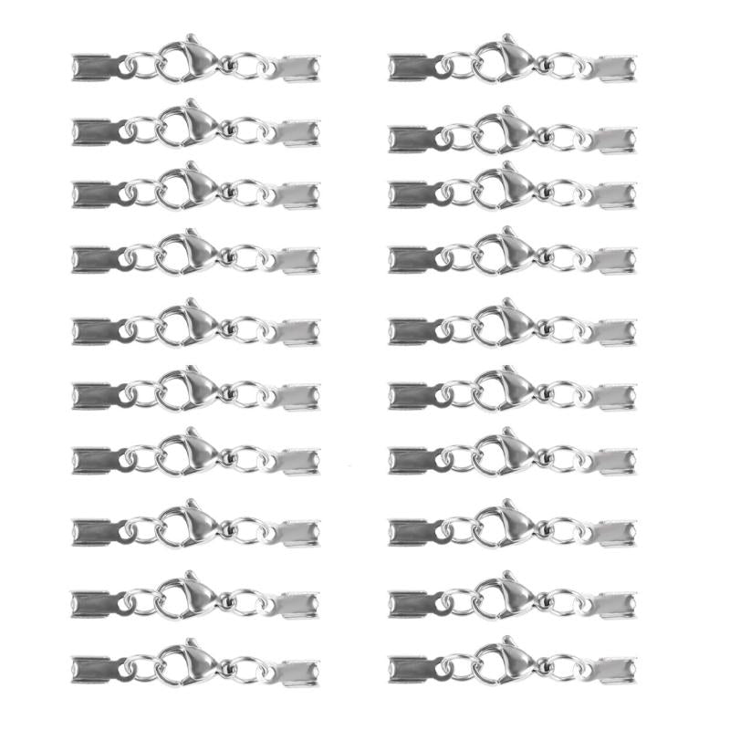 Upgrade your jewelry-making with this set of 20 stainless steel rope buckle clips. Ideal for creating necklaces and bracelets, these lobster clasp combinations are durable and high-quality.