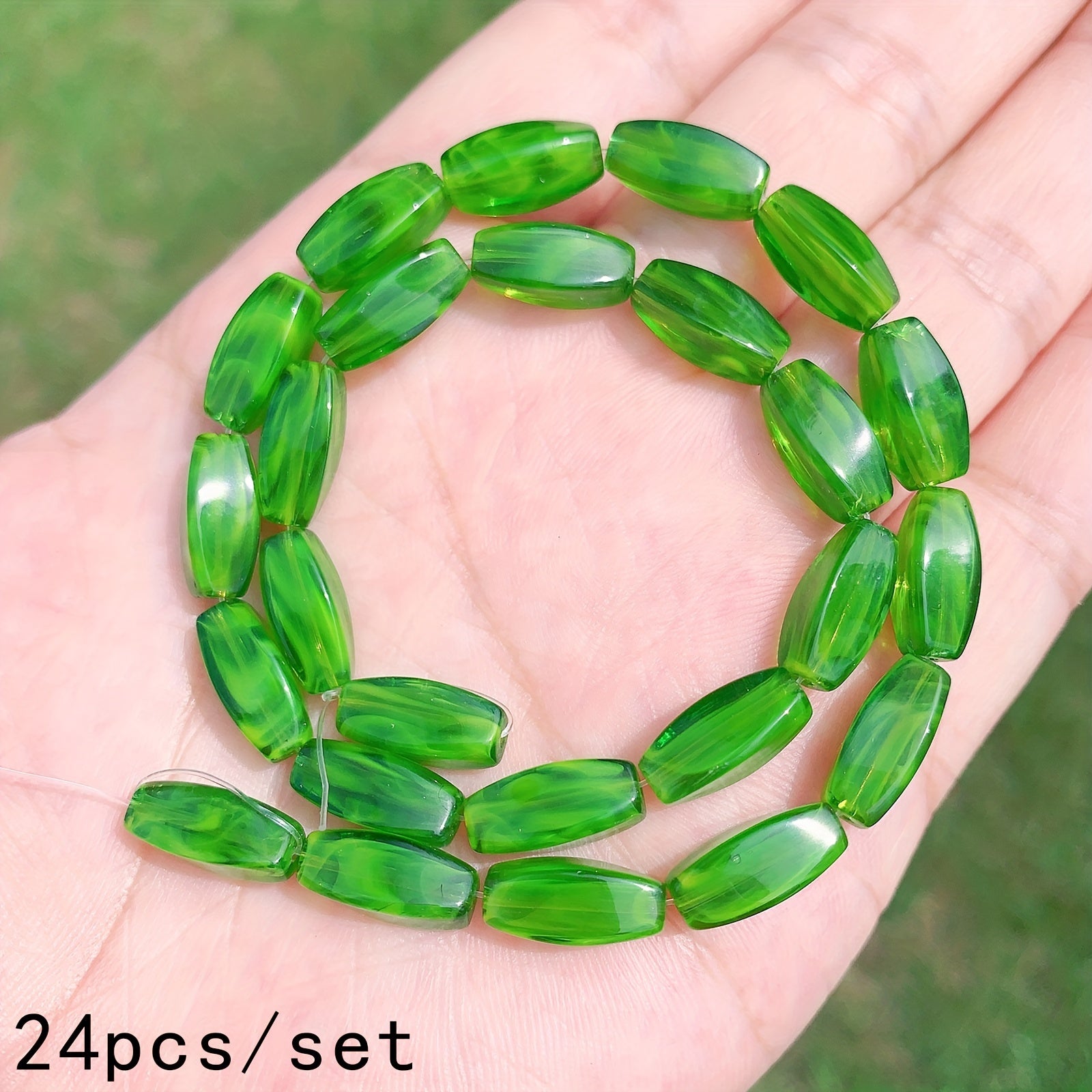 Create stunning DIY bracelets with this set of 24 green gradient glass beads. These crystal beads are perfect for adding a touch of sparkle to your jewelry designs.