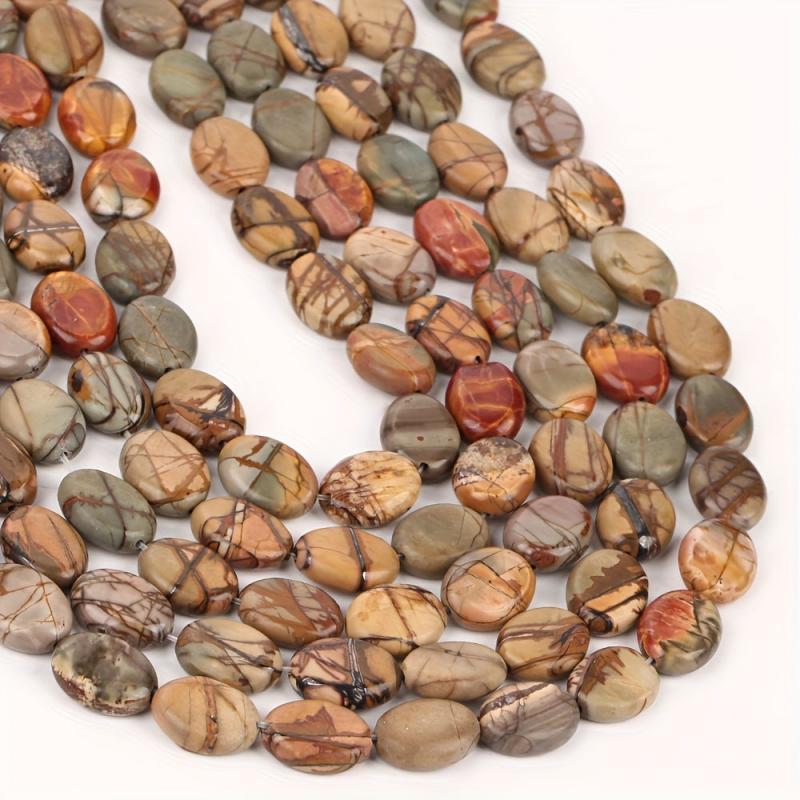 Create stunning DIY jewelry with these 12x16mm oval red turquoise beads in marbled earthy tones. Perfect for bracelets and necklaces.