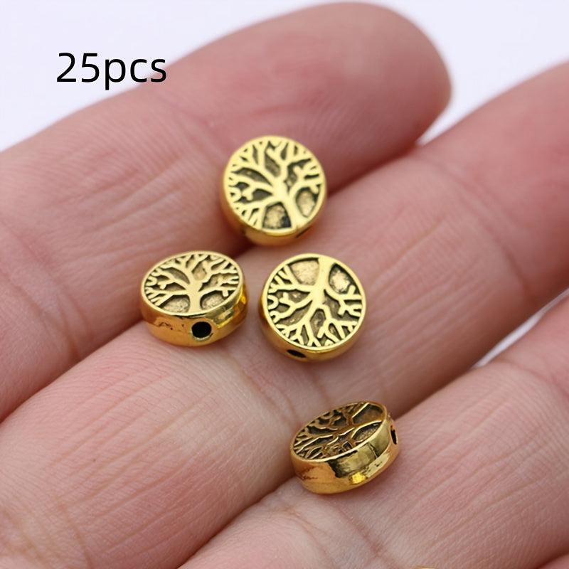 Enhance your jewelry collection with this set of 25 Tree of Life charm beads. Perfect for bracelets, necklaces, and earrings, these beads add a unique touch to your DIY creations.